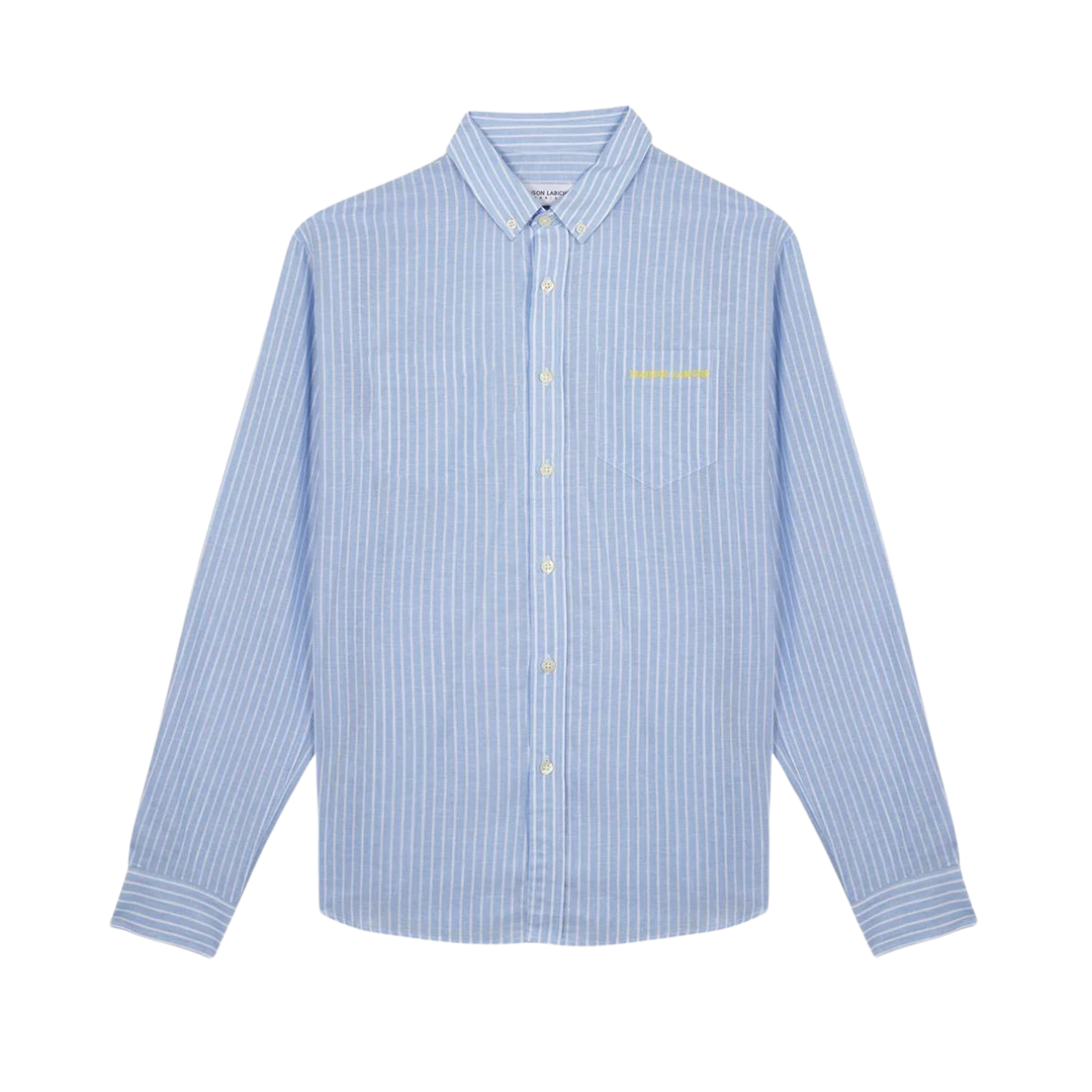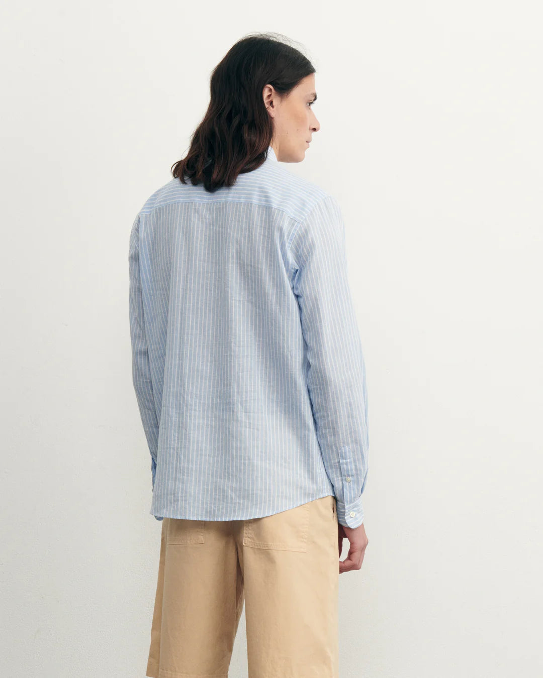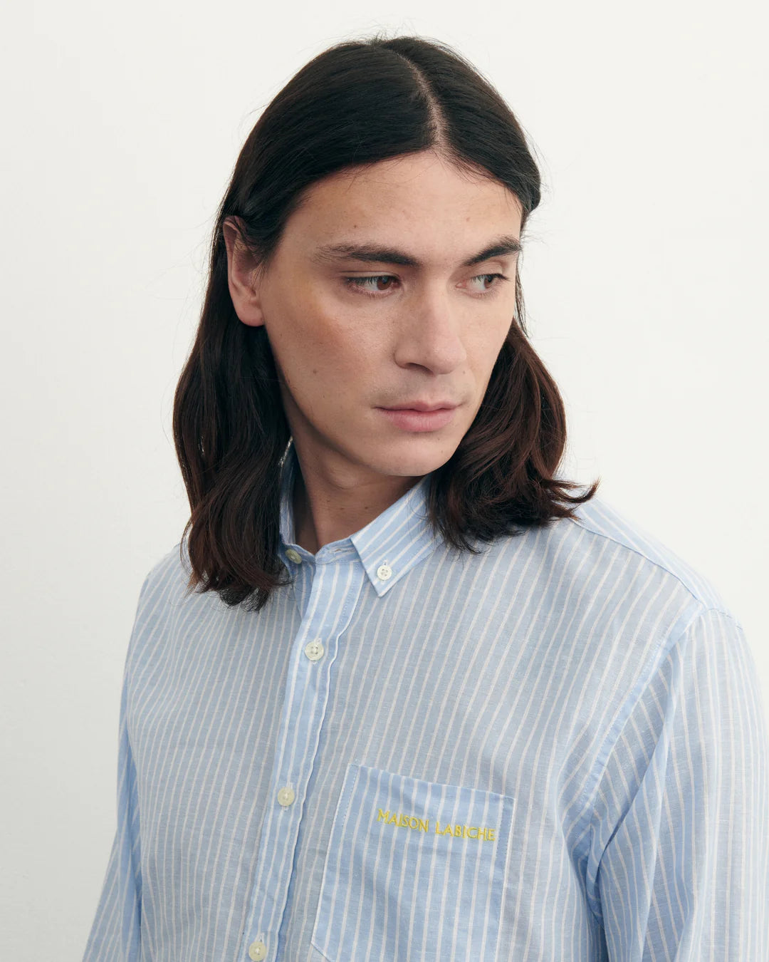 This 'Carnot' shirt by Maison Labiche is made from light blue striped linen.