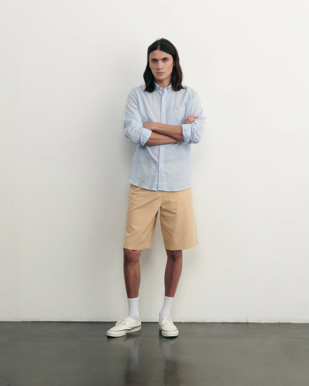 Our Carnot linen shirt has a straight, slightly fitted cut, a breast pocket over the heart and buttons engraved with ""Maison Labiche"". Its embroidery is the new Maison Labiche signature.