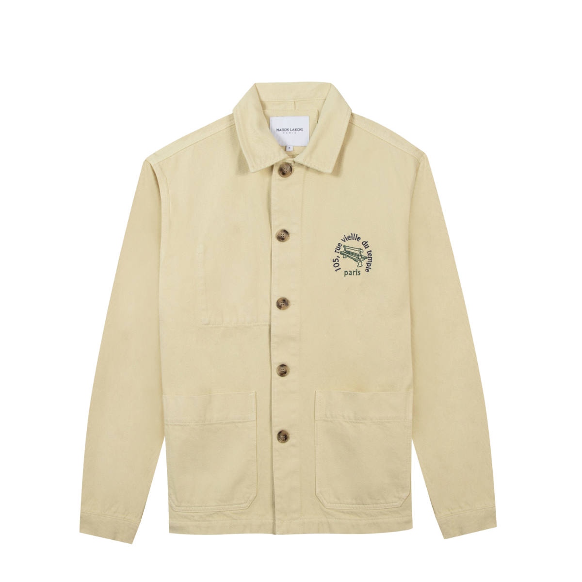 The 'Vieille Du Temple' jacket by Maison Labiche likely features a design inspired by the Parisian street.