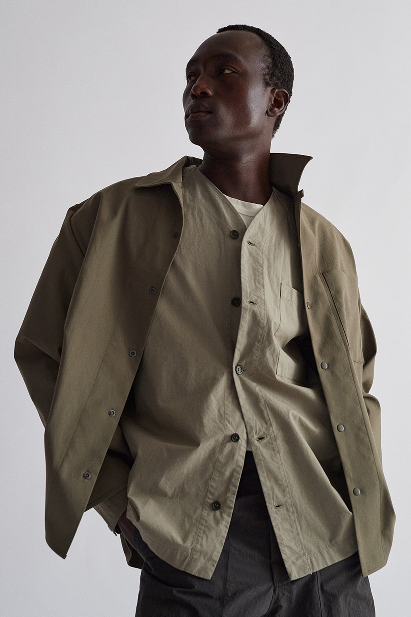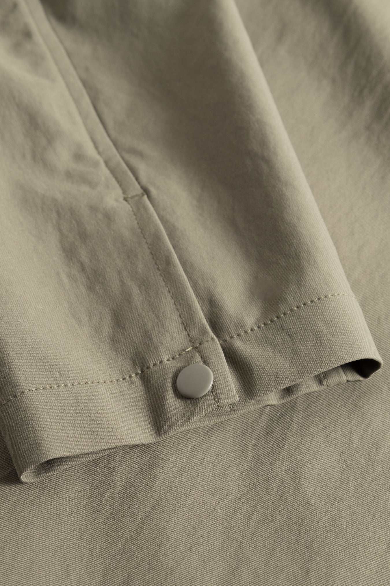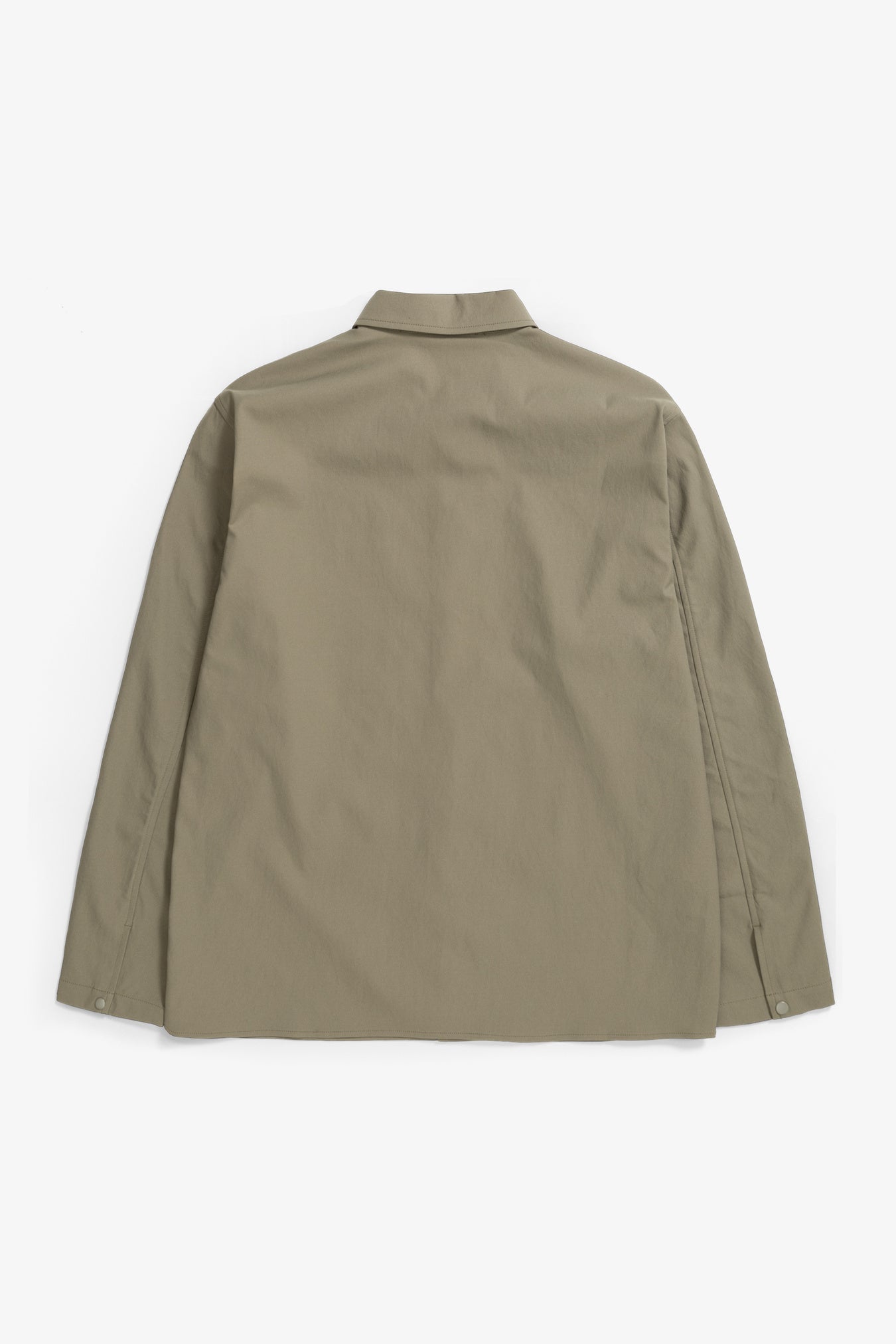 A relaxed fitting open collar shirt, constructed with a performance stretch twill using Solotex. The breathable fabric is treated with a PFC free DWR finish to stay dry and comfortable. Durable and essentially crease-resistant, it will stay clean even when stressed and wrinkled, quickly returning to its natural appearance. This shirt features chest pocket, and is finished with a stitched through placket and snap front, and minimal stitch detailing for a clean finish.