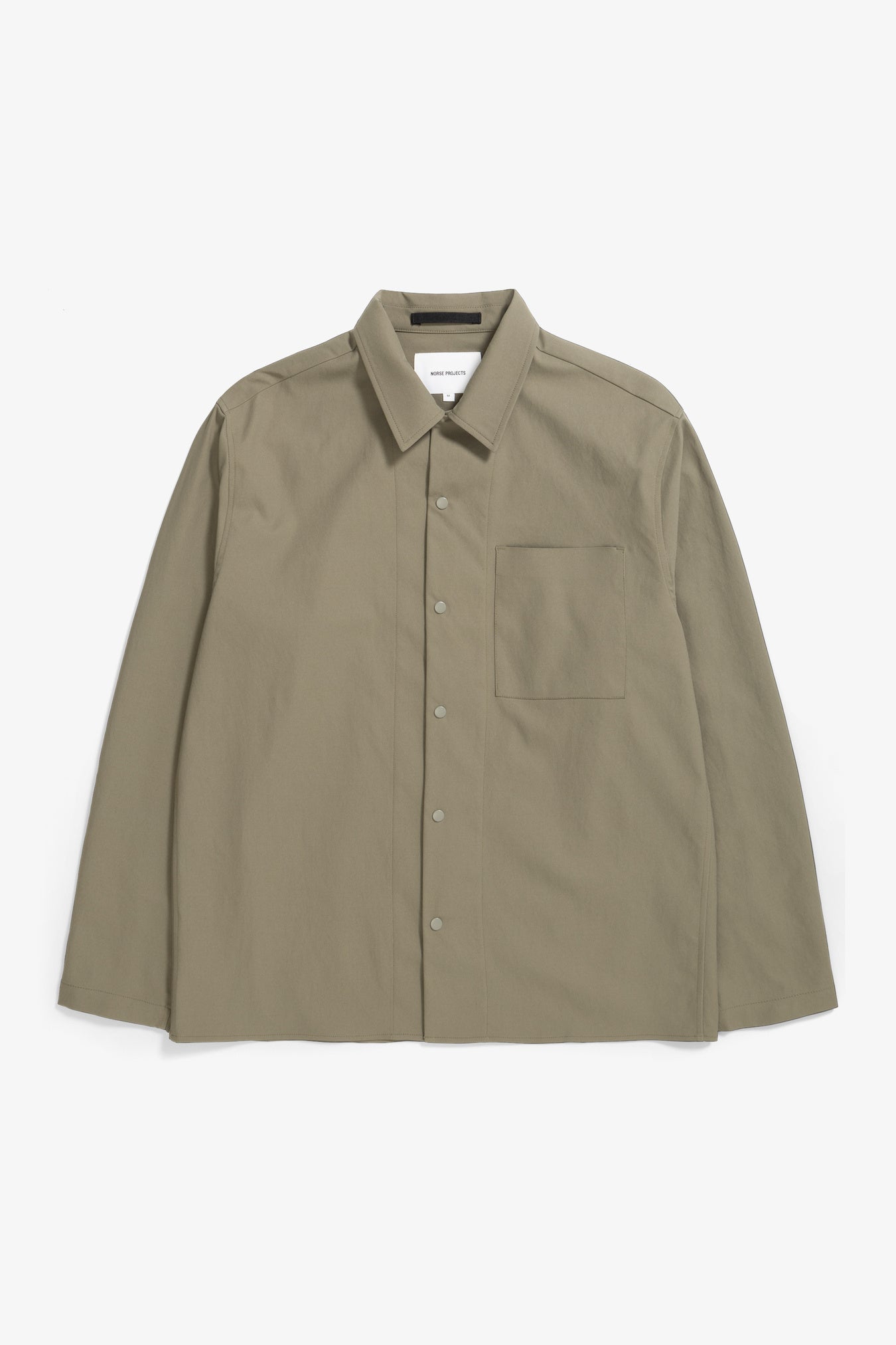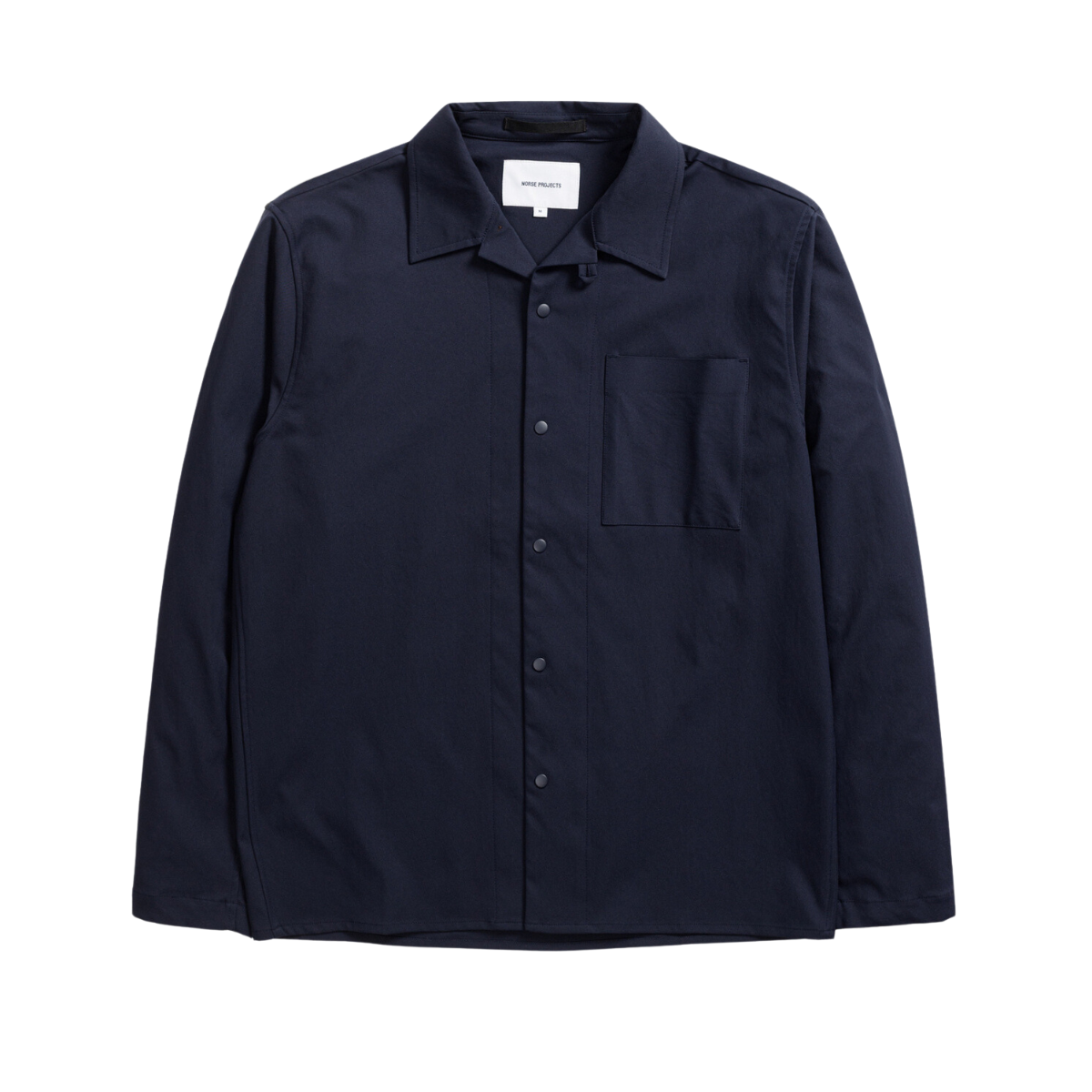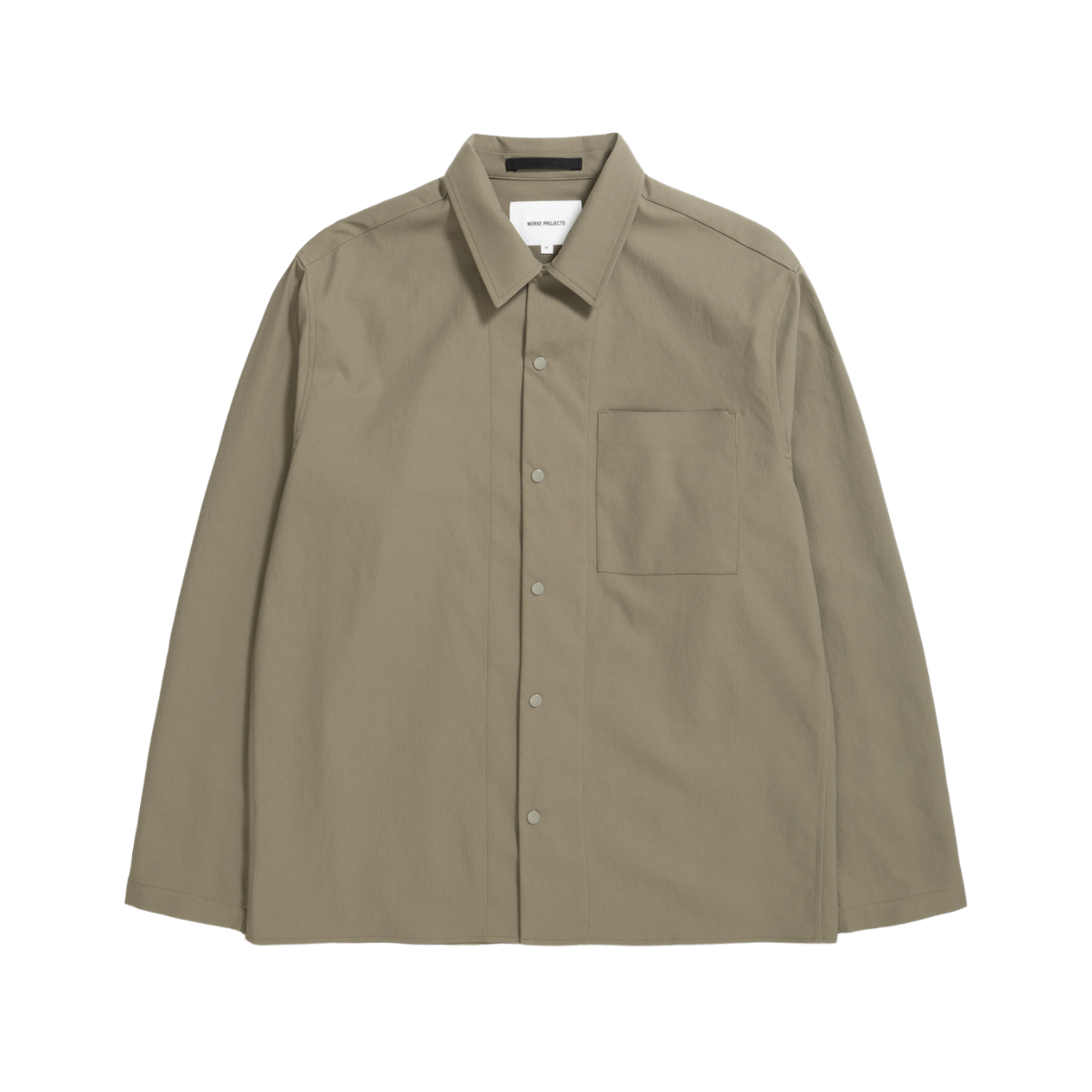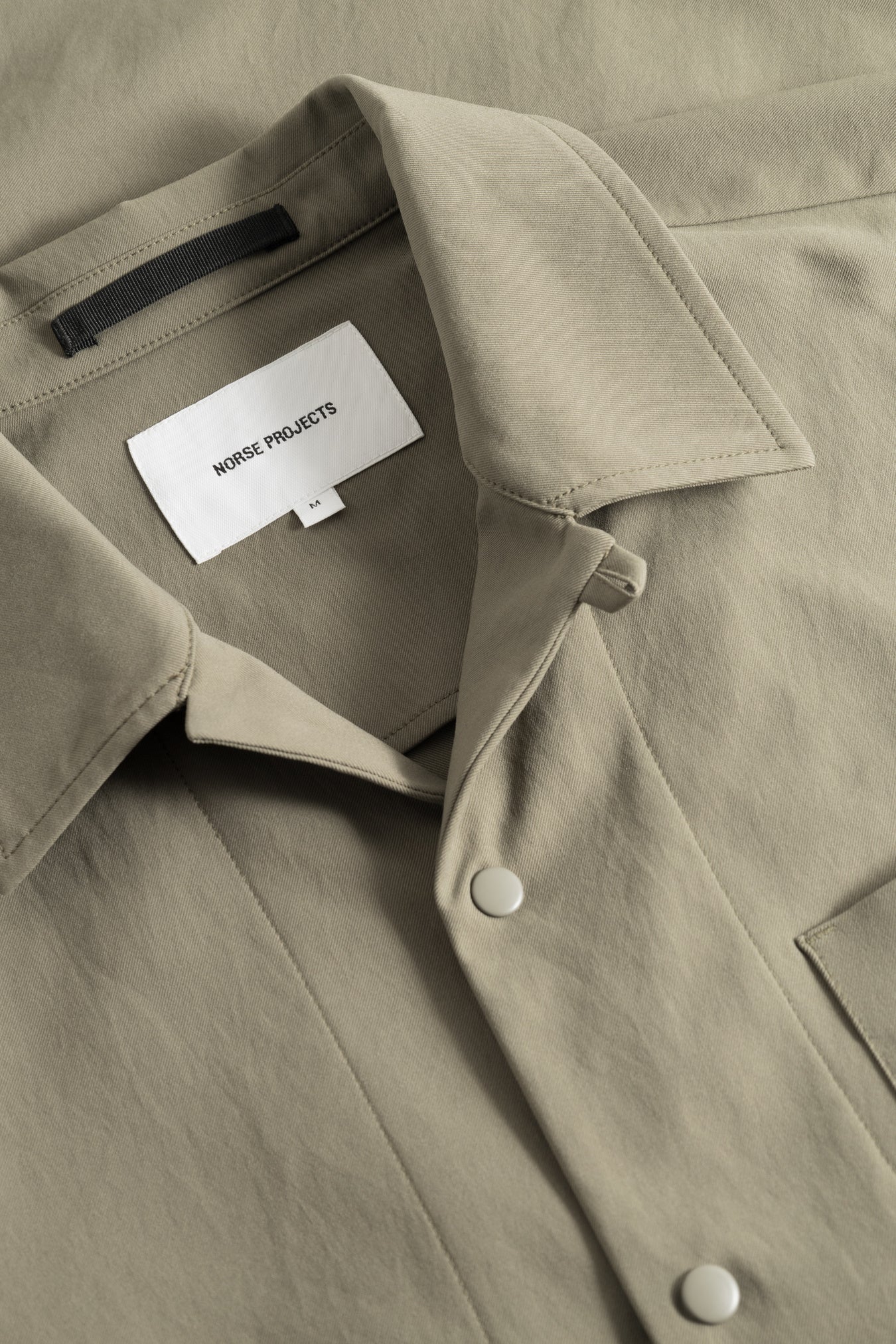 A relaxed fitting open collar shirt, constructed with a performance stretch twill using Solotex. The breathable fabric is treated with a PFC free DWR finish to stay dry and comfortable. Durable and essentially crease-resistant, it will stay clean even when stressed and wrinkled, quickly returning to its natural appearance. This shirt features chest pocket, and is finished with a stitched through placket and snap front, and minimal stitch detailing for a clean finish.