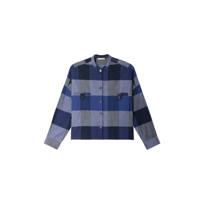 Cropped shirt with welt pockets made from soft, compact poplin woven in Italy, featuring Madras checks and fine stripes exclusive to Sessùn.