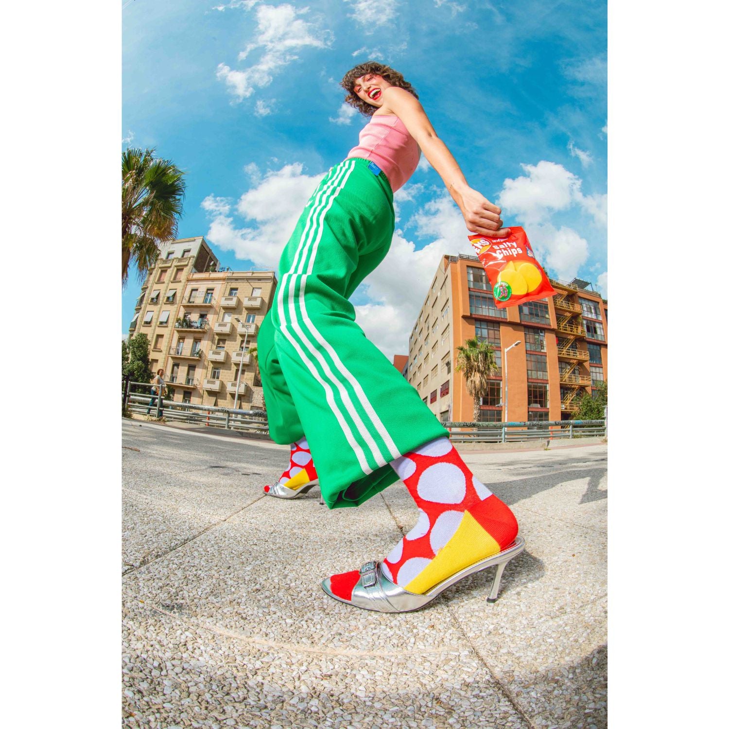 These fun socks, shaped like a bag of potato chips, add a playful crunch to your style with a flavorful twist.