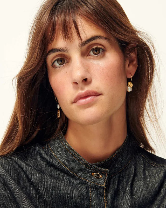 50% Recycled golden brass 50% Freshwater pearl