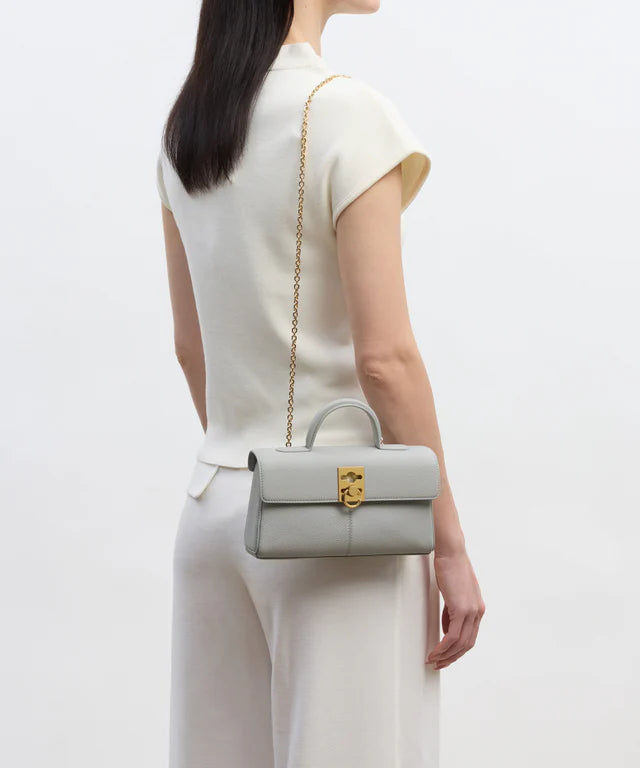 The favourite Stance Wallet returns in Morning Dew, a pale, luminous blue inspired by the first light settling on fresh leaves. Signalling a promise of new beginnings, this serene hue offers a sense of clarity and refined simplicity. The refreshing palette pairs perfectly with the iconic geometrical silhouette, while the premium pebbled leather adds a tactile touch to the crossbody.