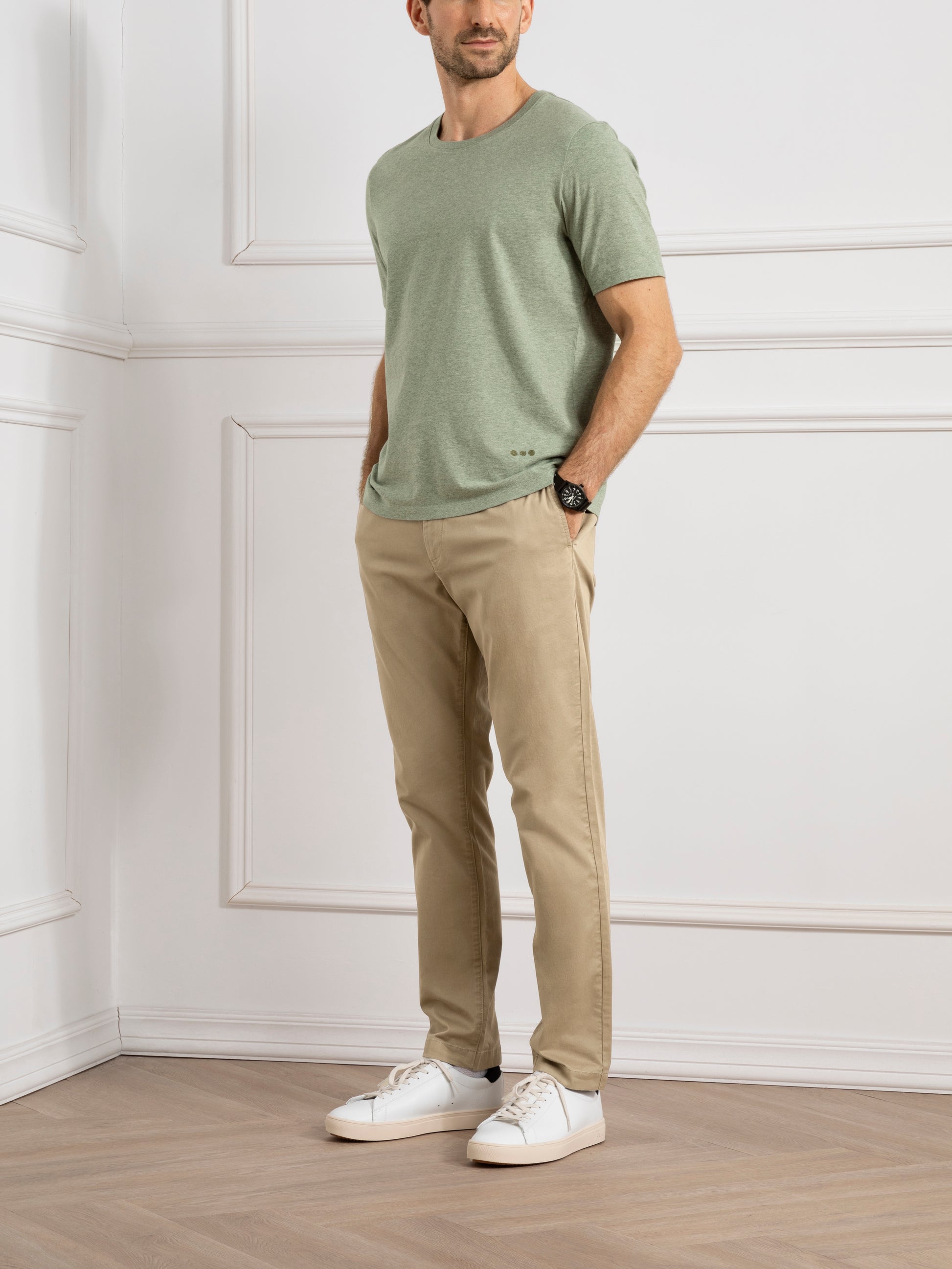 The 'Village Heather Tee' by O.N.S. is a classic short-sleeve t-shirt in a soft heathered fabric.