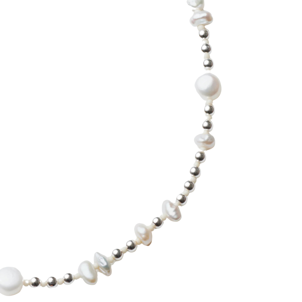 • White freshwater pearls and silver plated brass beads