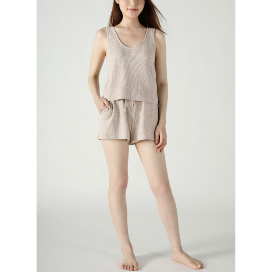 SCOOP NECK WAFFLE SET SPECKLED OATMEAL