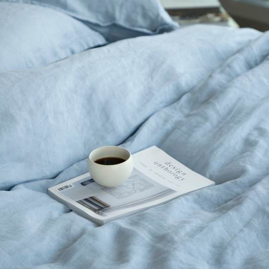 QUEEN LINEN FITTED SHEET BLUE FOG