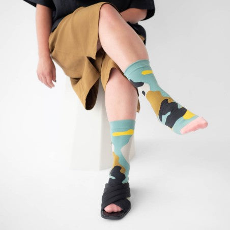 STRIPE SOCKS NAVY/OLIVE GREEN STRIPE