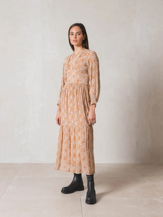 ANTONIA DRESS WITH PRINTED TOP AND SIDE POCKETS