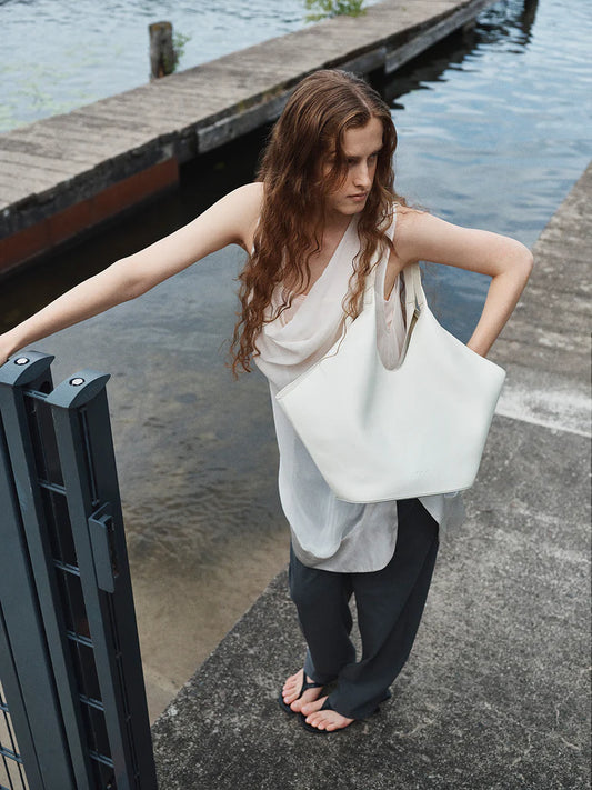 CREME MINI DRUM DRAWSTRING BUCKET BAG