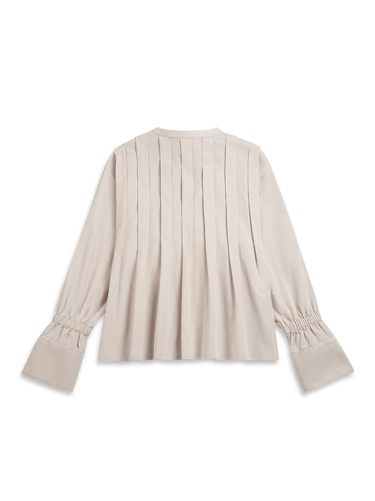 BAND COLLAR GATHERED BLOUSE HEATHER TAUPE