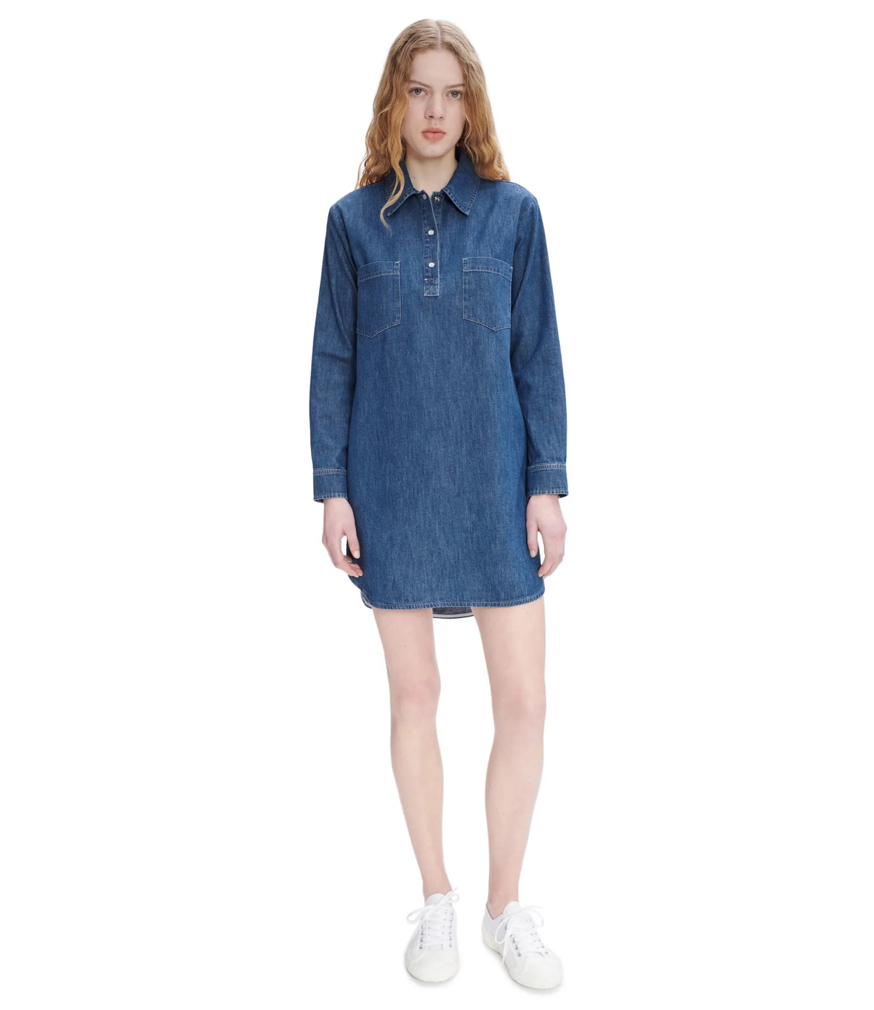 This washed indigo dress offers a relaxed and casual denim style for everyday comfort.