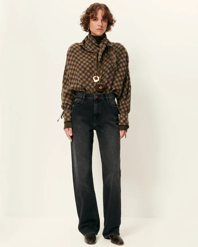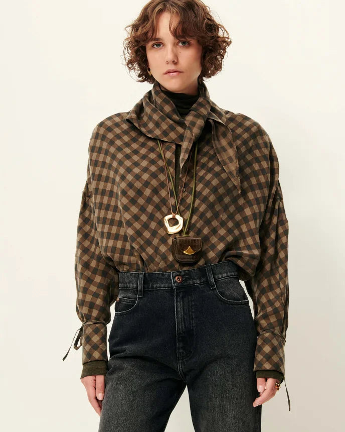 Oversized shirt in gingham-print lyocell satin in exclusive Sessùn colours. Ties at the cuff.