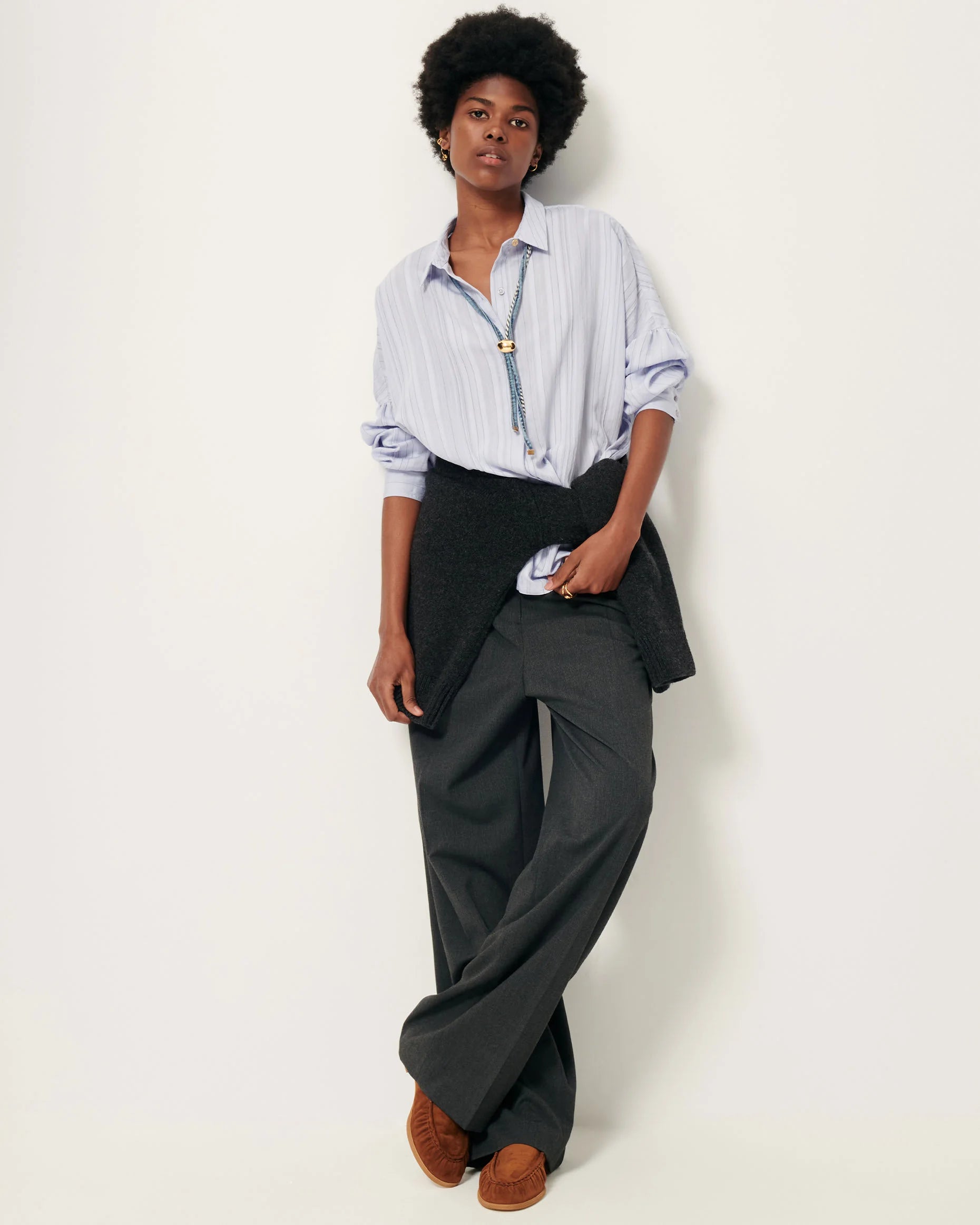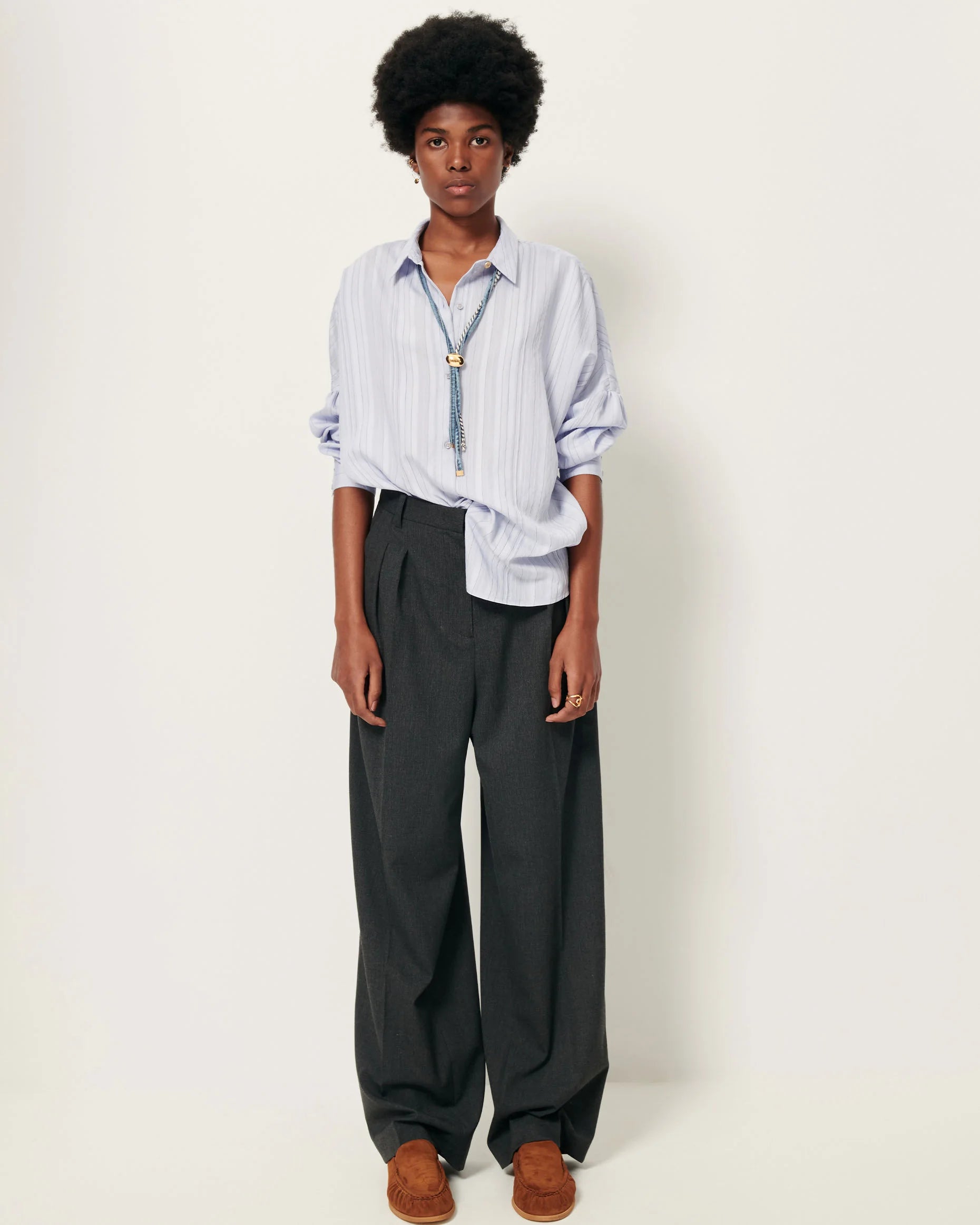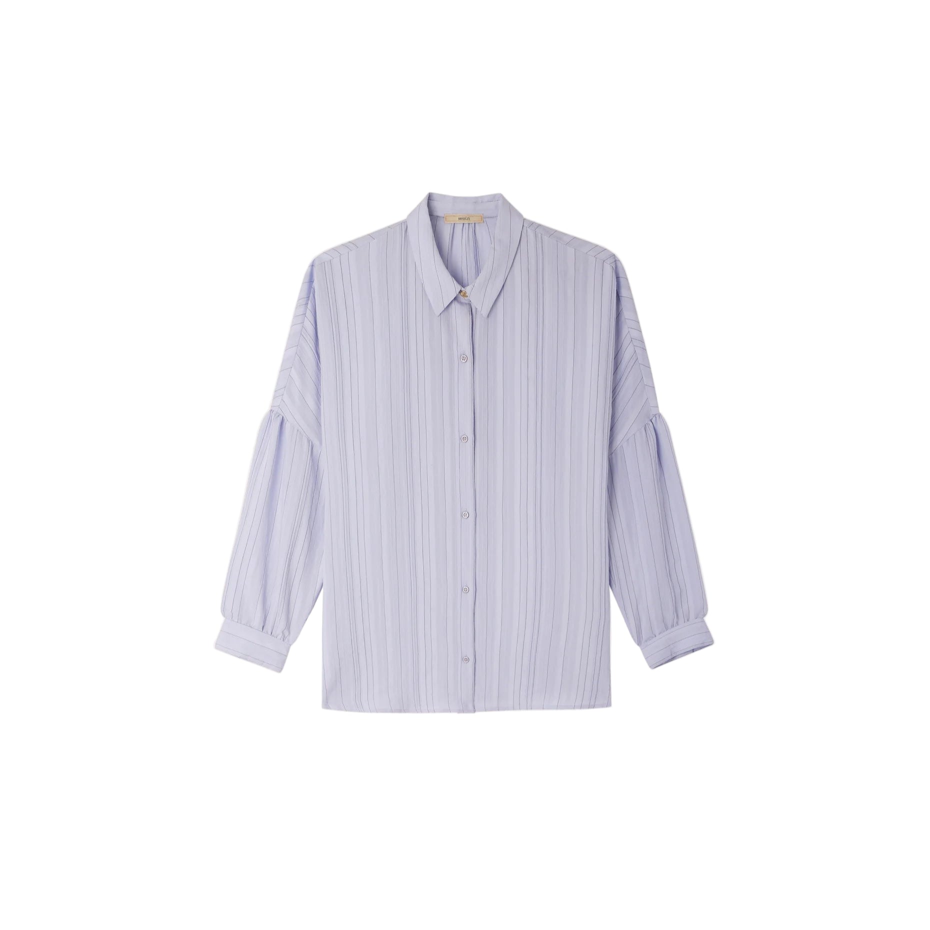 Shirt with gathered drop shoulders in lightweight viscose percale with dobby stripes.