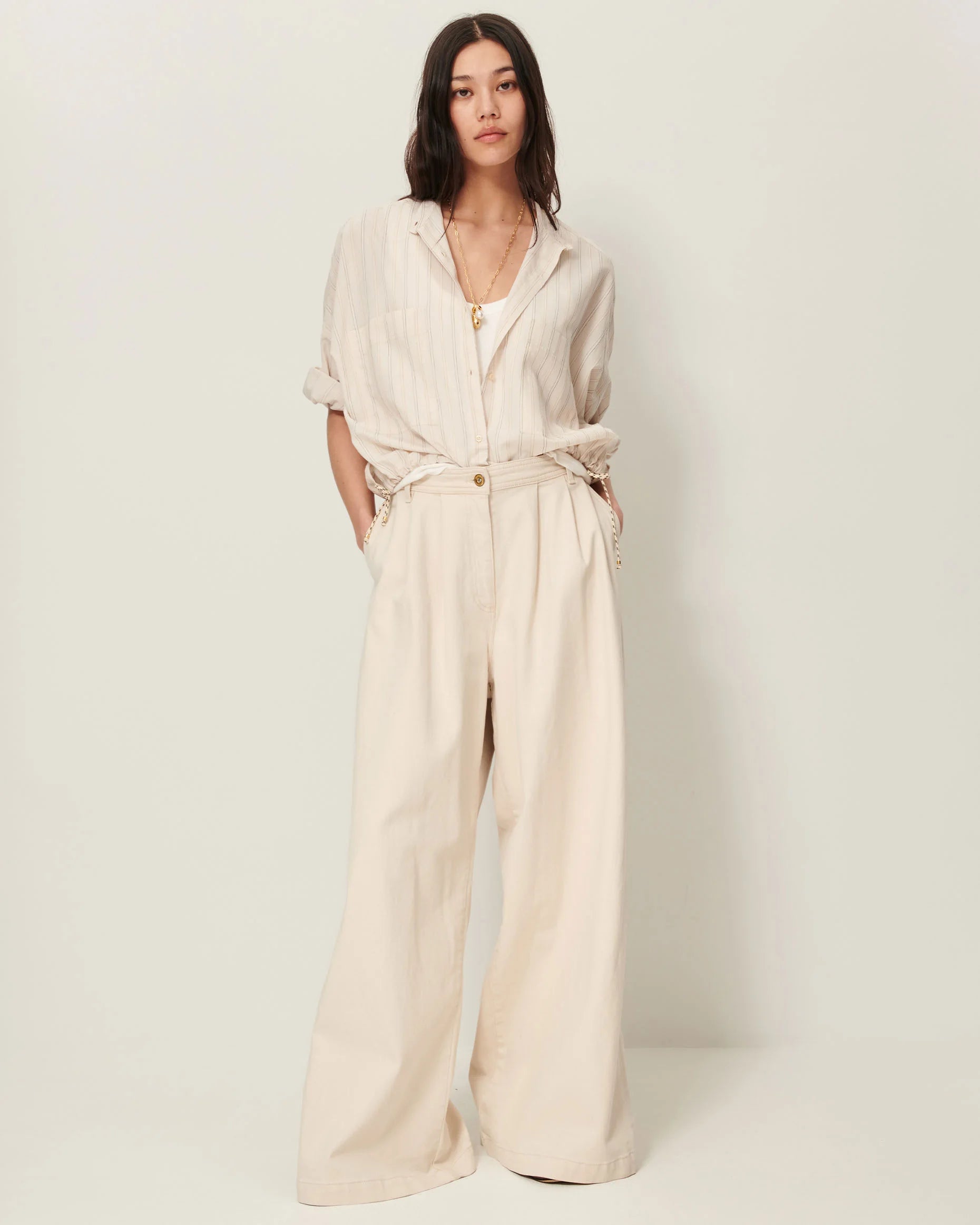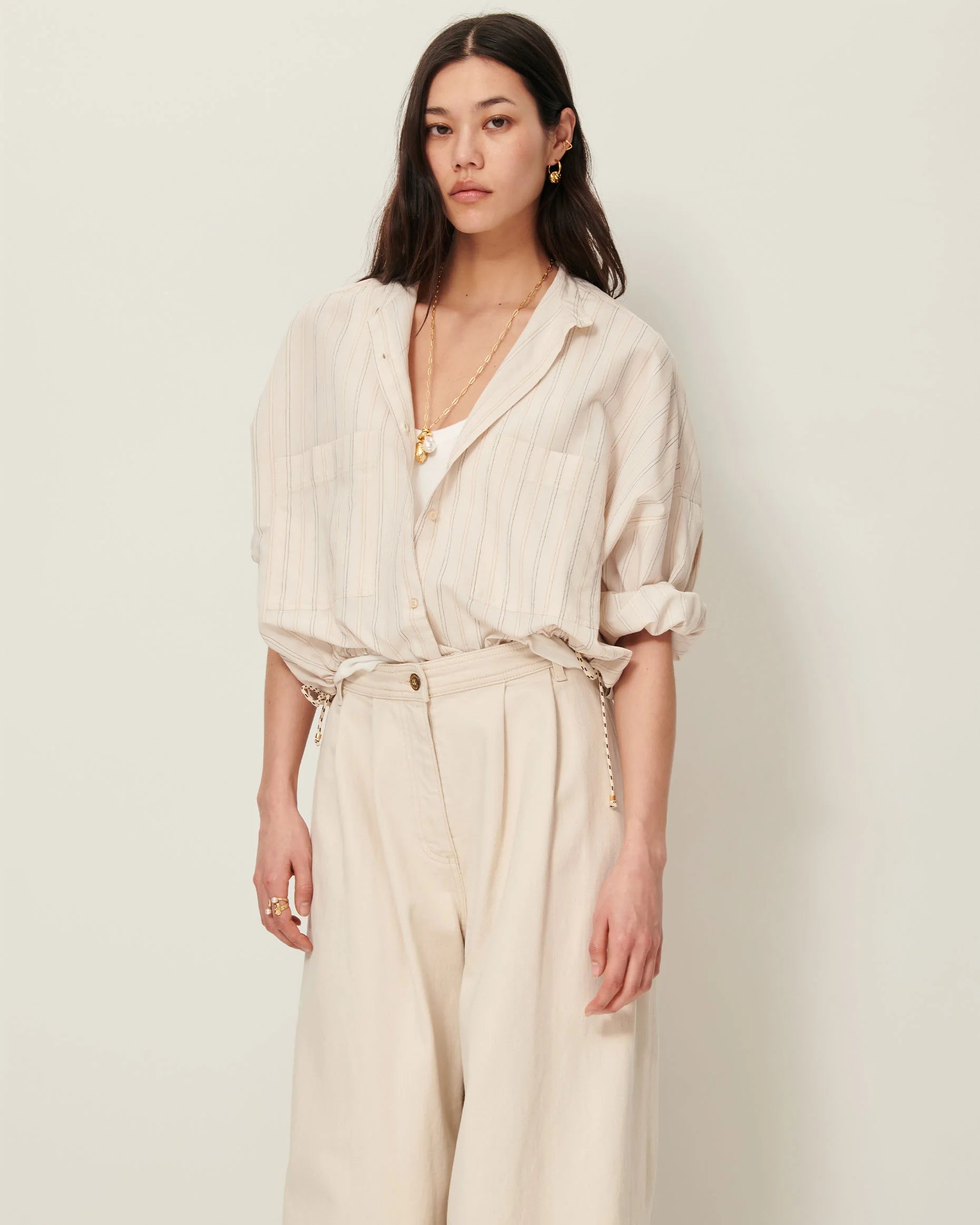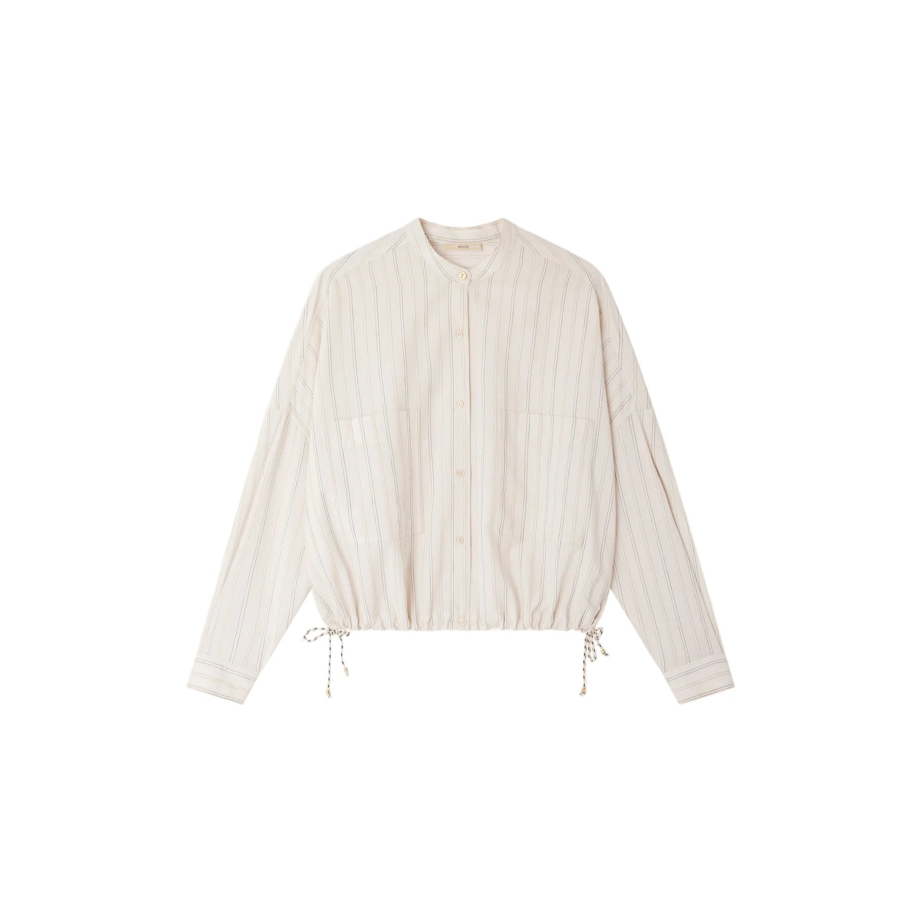 Shirt with decorative drawstring detail at the waist in soft poplin with dobby stripes, woven in Italy, exclusive to Sessùn.