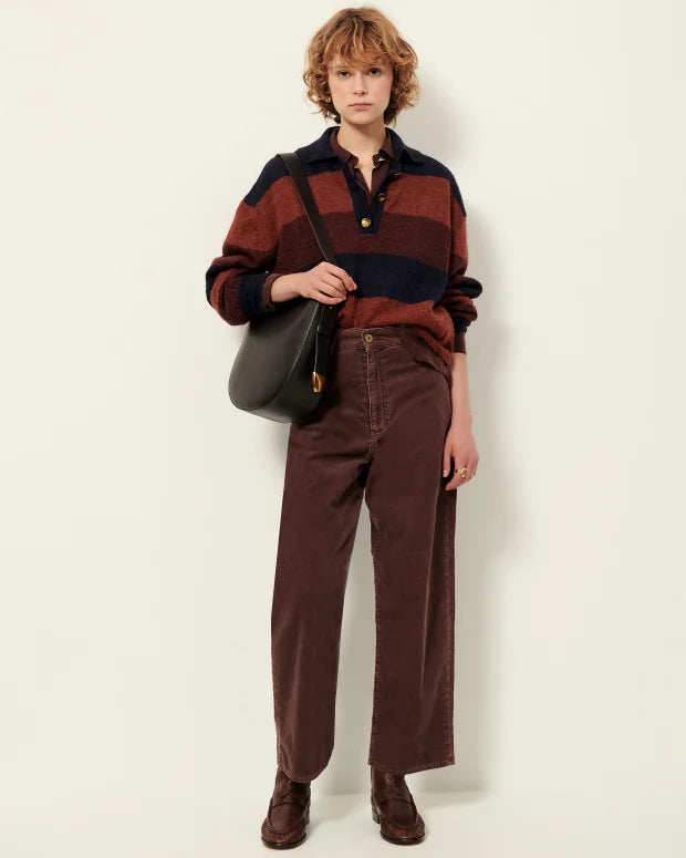 Striped long-sleeve polo-style sweater in a fluffy jersey knit, knitted in Italy.