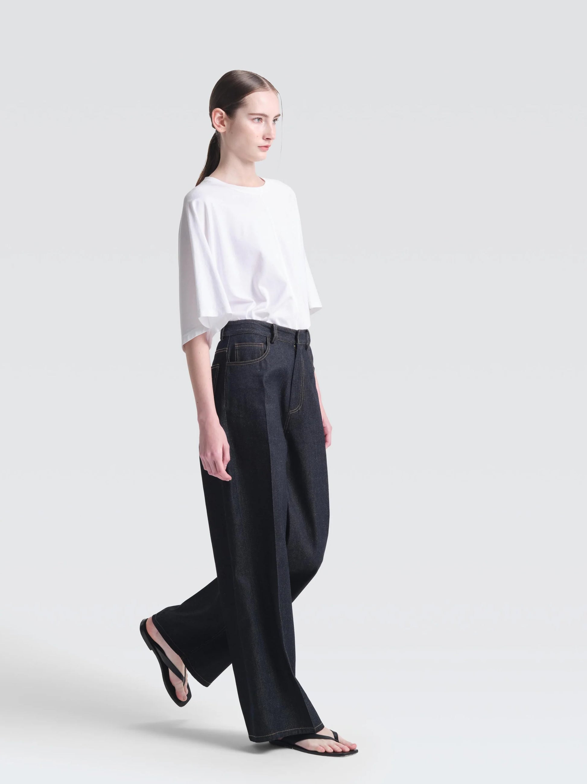 A good denim pant makes for a smart investment for every sophisticated wardrobe. This option is crafted from Japanese denim that has been pre-washed for softness, and is shaped to a classic trucker-style silhouette for easy pairings. It is completed with tonal top stitching all around, and features a frayed hem for a cool vibe.