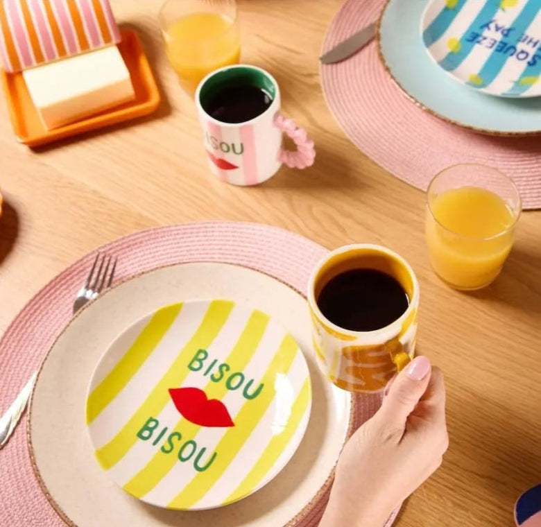 Upgrade your tableware collection with the Diego Squeeze The Day plate from Que Rico. These are handmade plates that echo the lively Spanish spirit, these plates are decorated with lively inscriptions and elaborate designs. Each handcrafted plate is a testament to elegance and artistry, ensuring that each piece has its own unique vibe. As each piece is handmade with love, slight deviations from the image may occur as they are handmade.