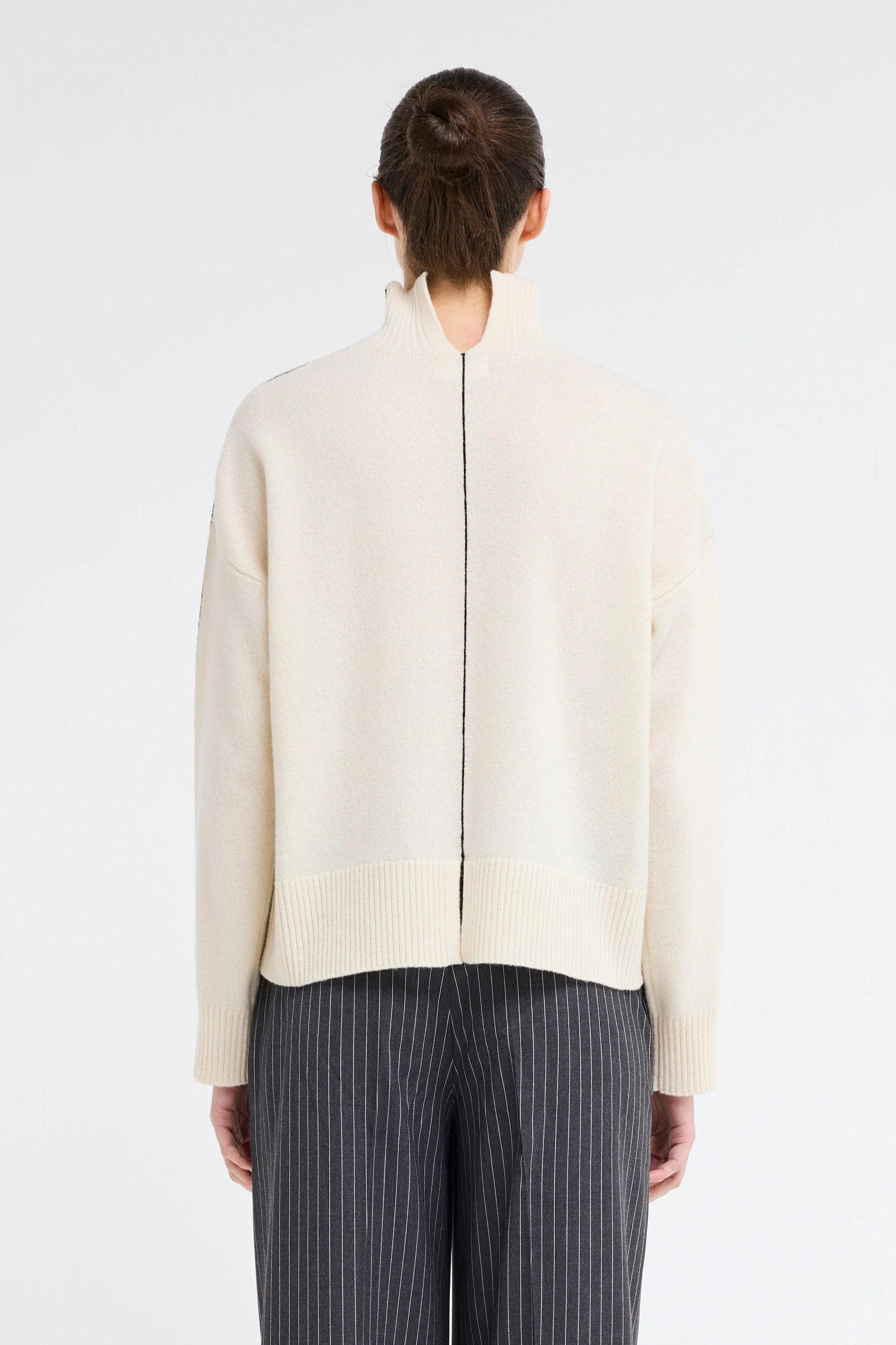A sculptural knit with thoughtful detail. The Kooning features a high ribbed neck, subtle slit at the back, and contrast seam stitching.