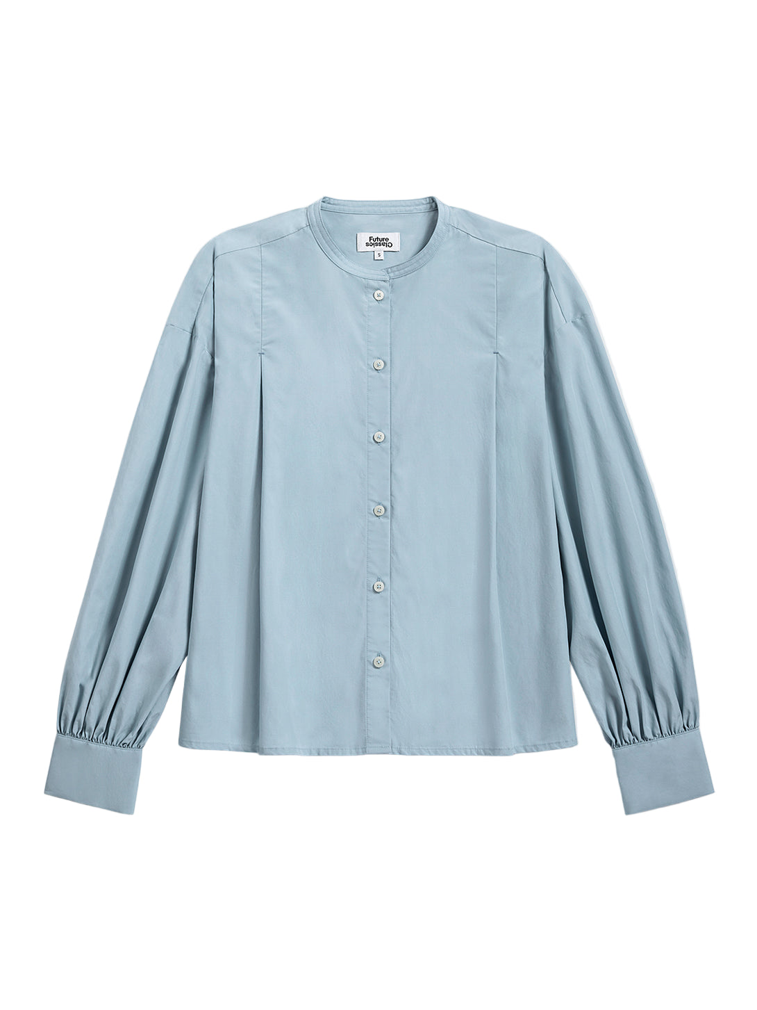 Our Pleated Lantern Blouse is a timeless wardrobe essential, featuring a round neckline with button-up front and elegant long puff sleeves. Pleated details accentuate the design from front to back, shaping in a gentle structure. Crafted from a soft, breathable Cotton blend, it’s the perfect piece for professional staples.