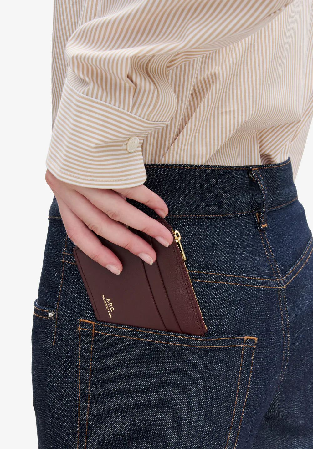 - Gold embossing "A.P.C. Rue Madame Paris".