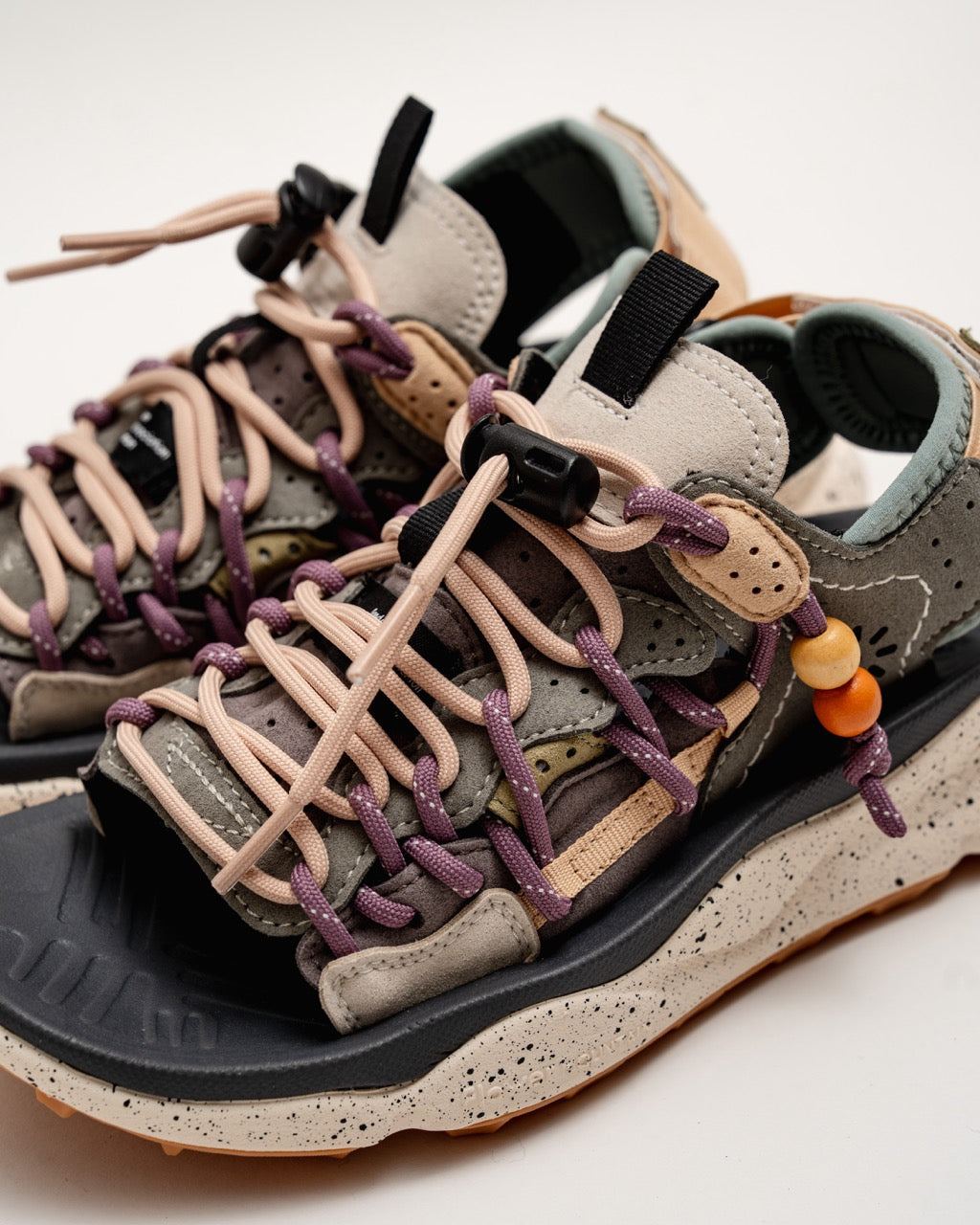 Outdoor sandals in faux leather with technical laces, lining and fabric insole.