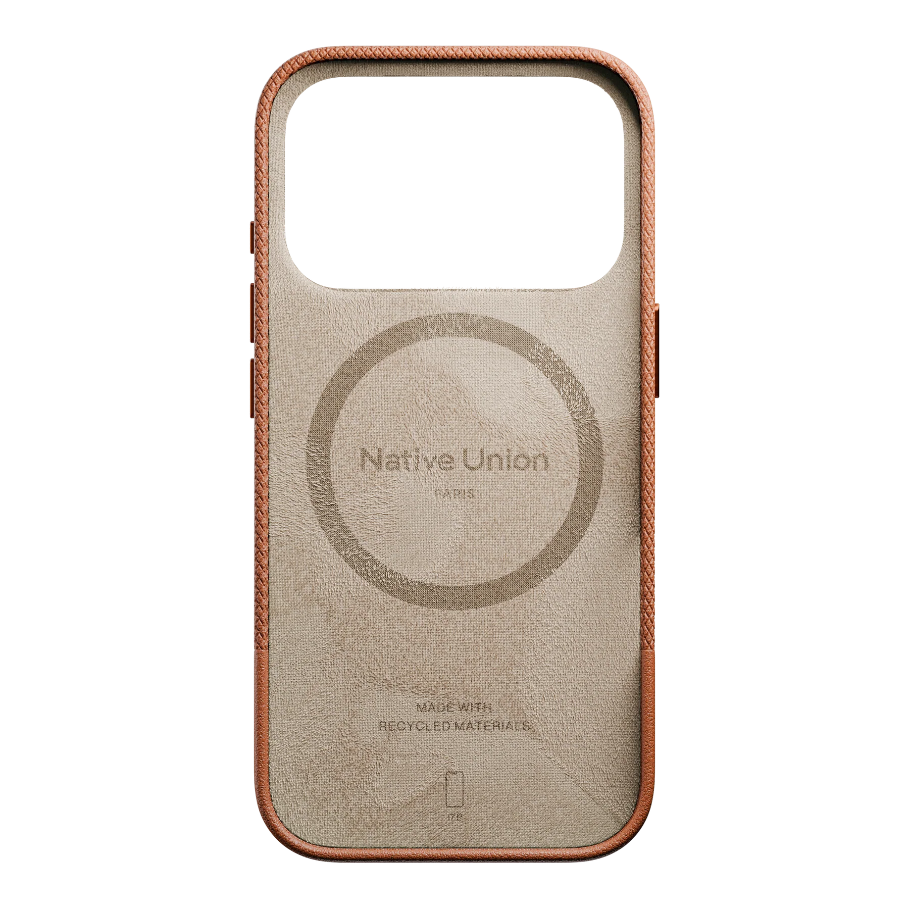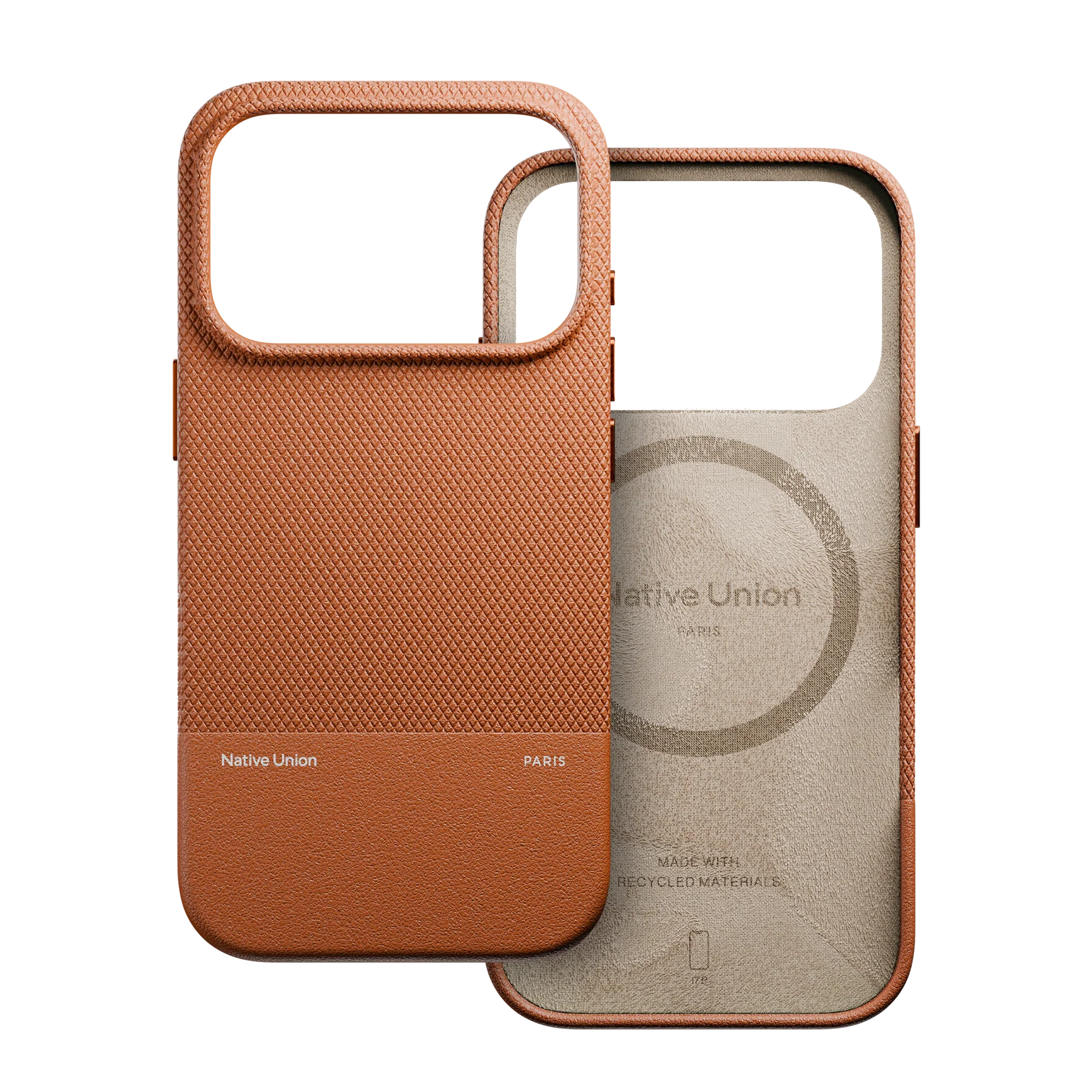 Textured elegance for your iPhone, made better for the Earth with eco-conscious and recycled materials. The timeless contrast of smooth and cross-grained leather is reinterpreted with an animal-free leather alternative for low impact, long lasting protection.