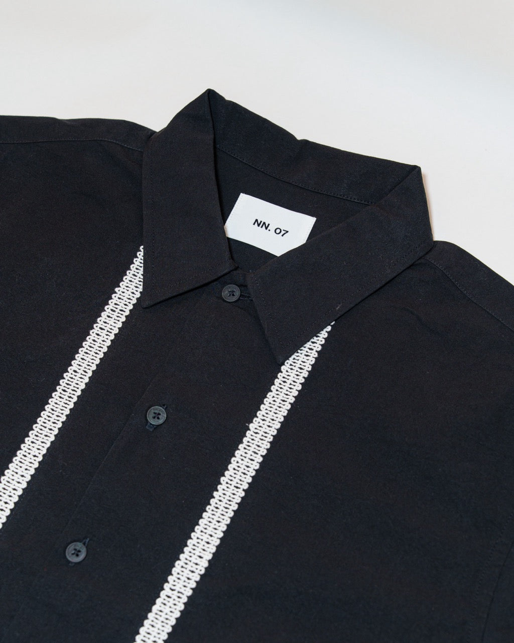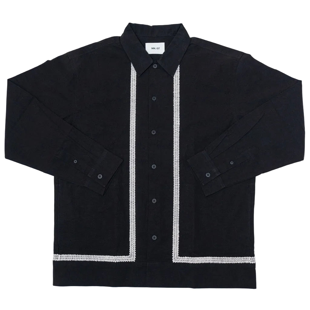 Relaxed-fit overshirt crafted from densely woven organic cotton poplin with a crisp, dry handfeel. Designed with ornate embroidery on the front panels, side seam pockets, and NN.07 logo buttons. Finished with a border detail on the hem for a refined touch.