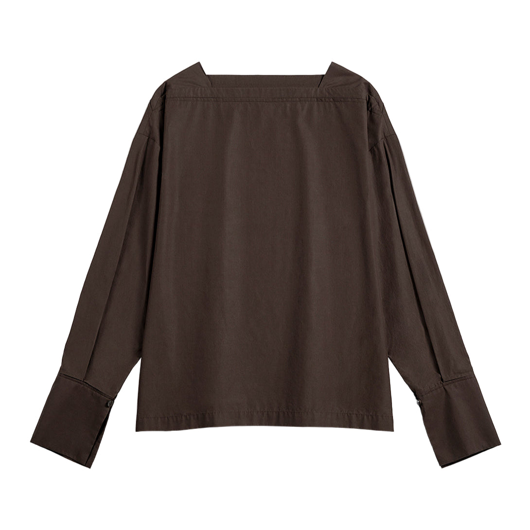 Our Structural Top combines minimalist style with a strong architectural silhouette. The oversized boat neck design in a straight fit creates a streamlined and clean look. It features sleeve slits at the sides and a refined folded pleat detail above the cuff, offering a polished, professional fit.