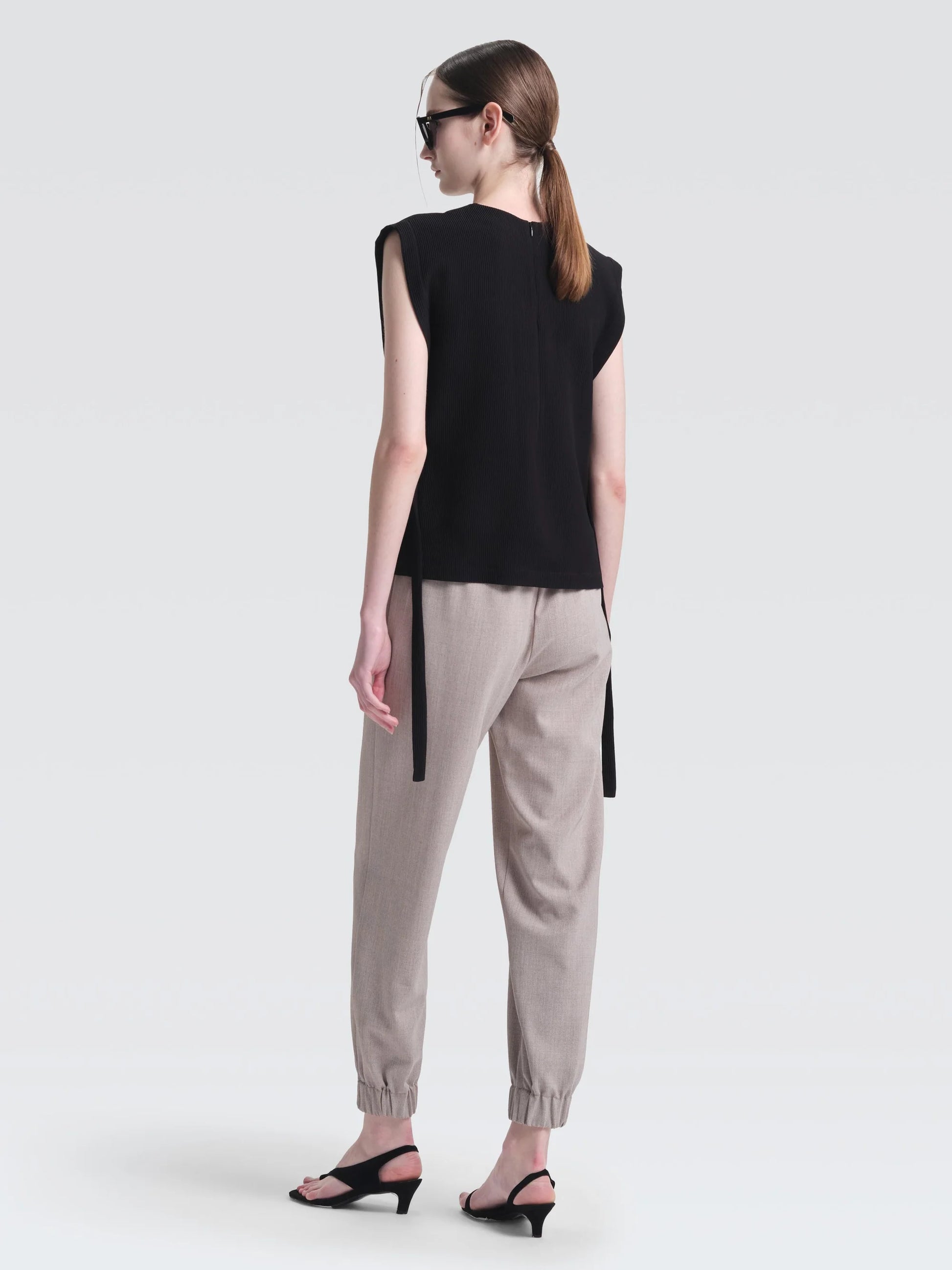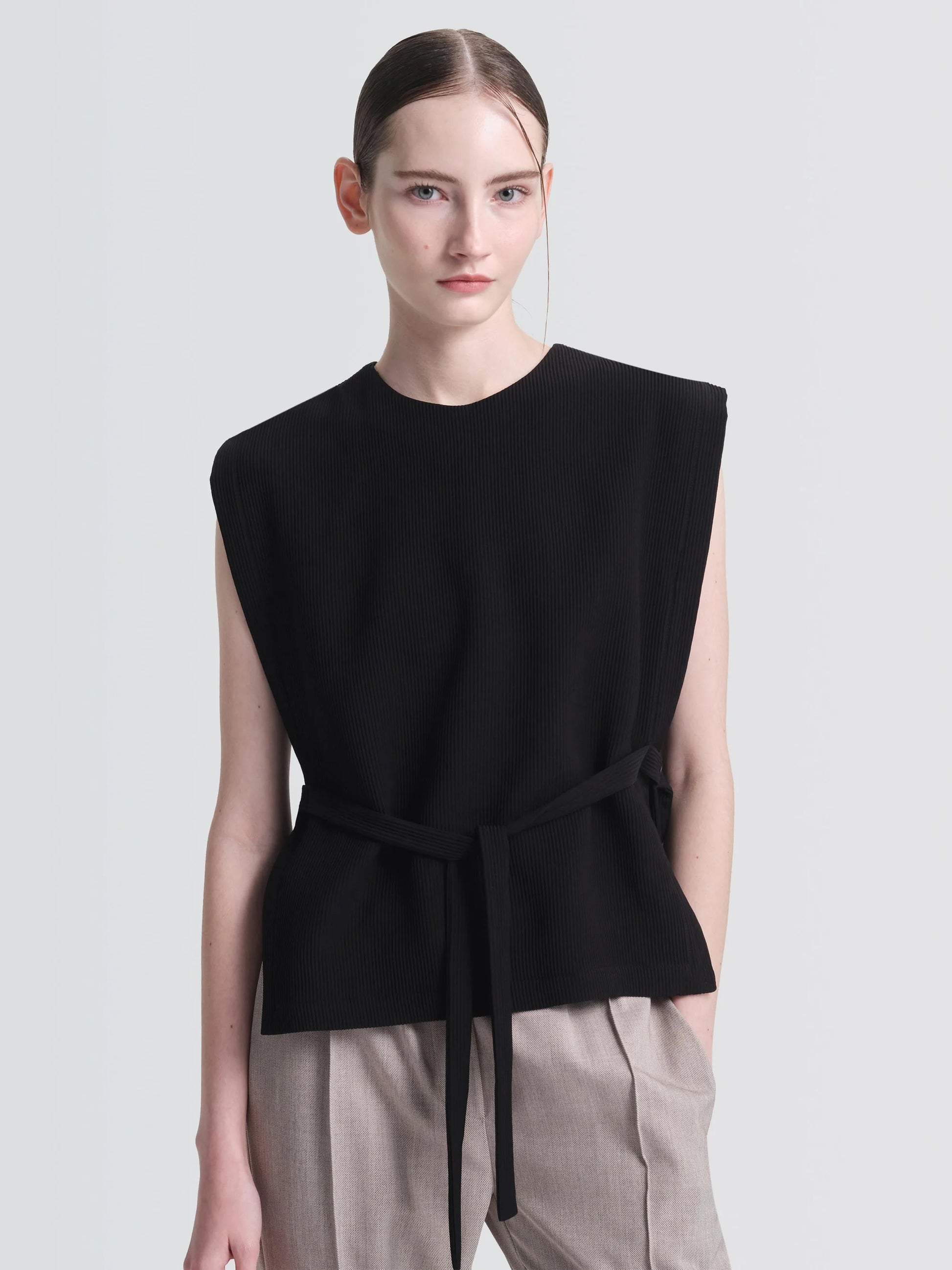 Minimal and effortless to style. Conceived with clean lines, soft drapes, and subtle construction, this top is crafted from corrugated suiting for a cropped, boxy fit. A versatile piece that slips easily into your everyday wardrobe.