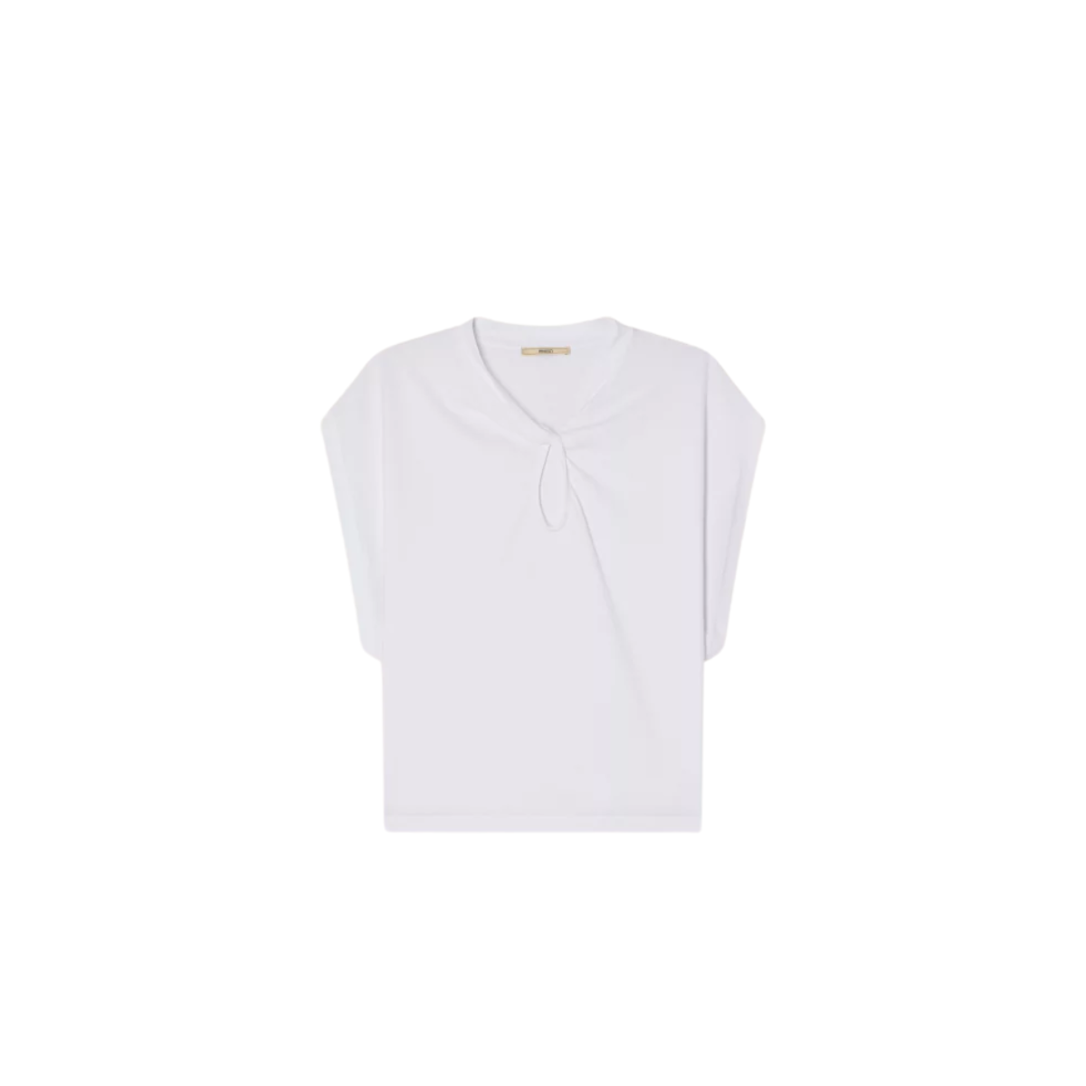 Sleeveless T-shirt in an interlock jersey fabric with a teardrop cutout, twisted at the neckline, made in Portugal.