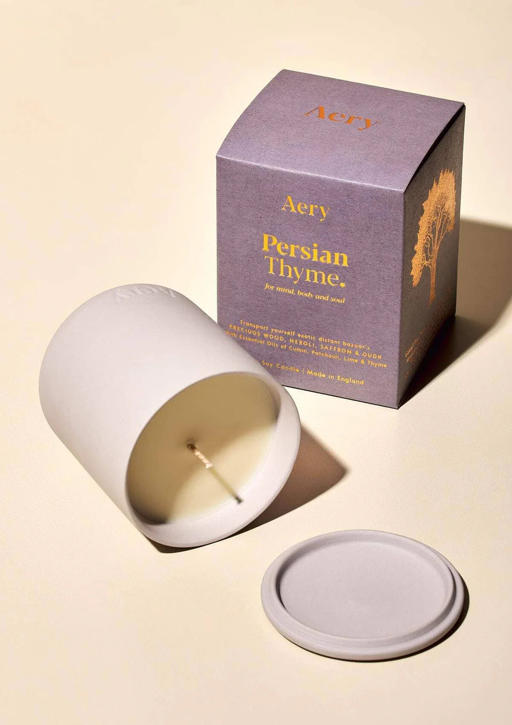 This scented candle by Aery Living fills your space with the aromatic and herbaceous scent of 'Persian Thyme'.