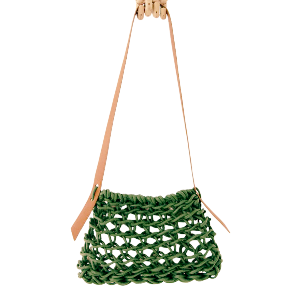 hand made woven bag realized with organic cotton rope and biodegradable leather.
