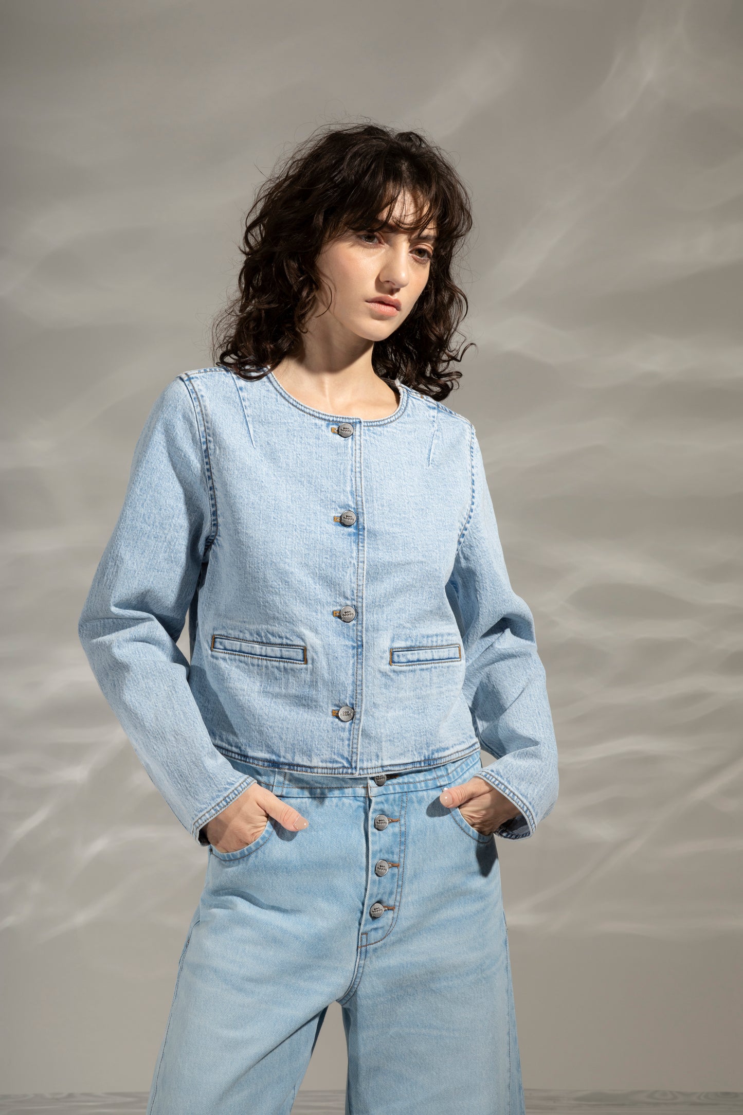 Our Bleached 3D Barrel Jeans are designed with a uniquely curved silhouette. Bleached washed and high waisted with exposed button - fly, the jeans accentuates the waist and is constructed with dimensional seam detail at knees. A playful piece to elevate any outfit of your summer festivities.