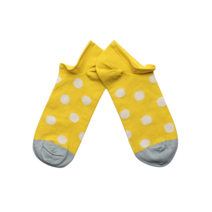 These ankle socks by Bonne Maison feature a vibrant 'Pois Sulfure' (Sulfur Dots) design.
