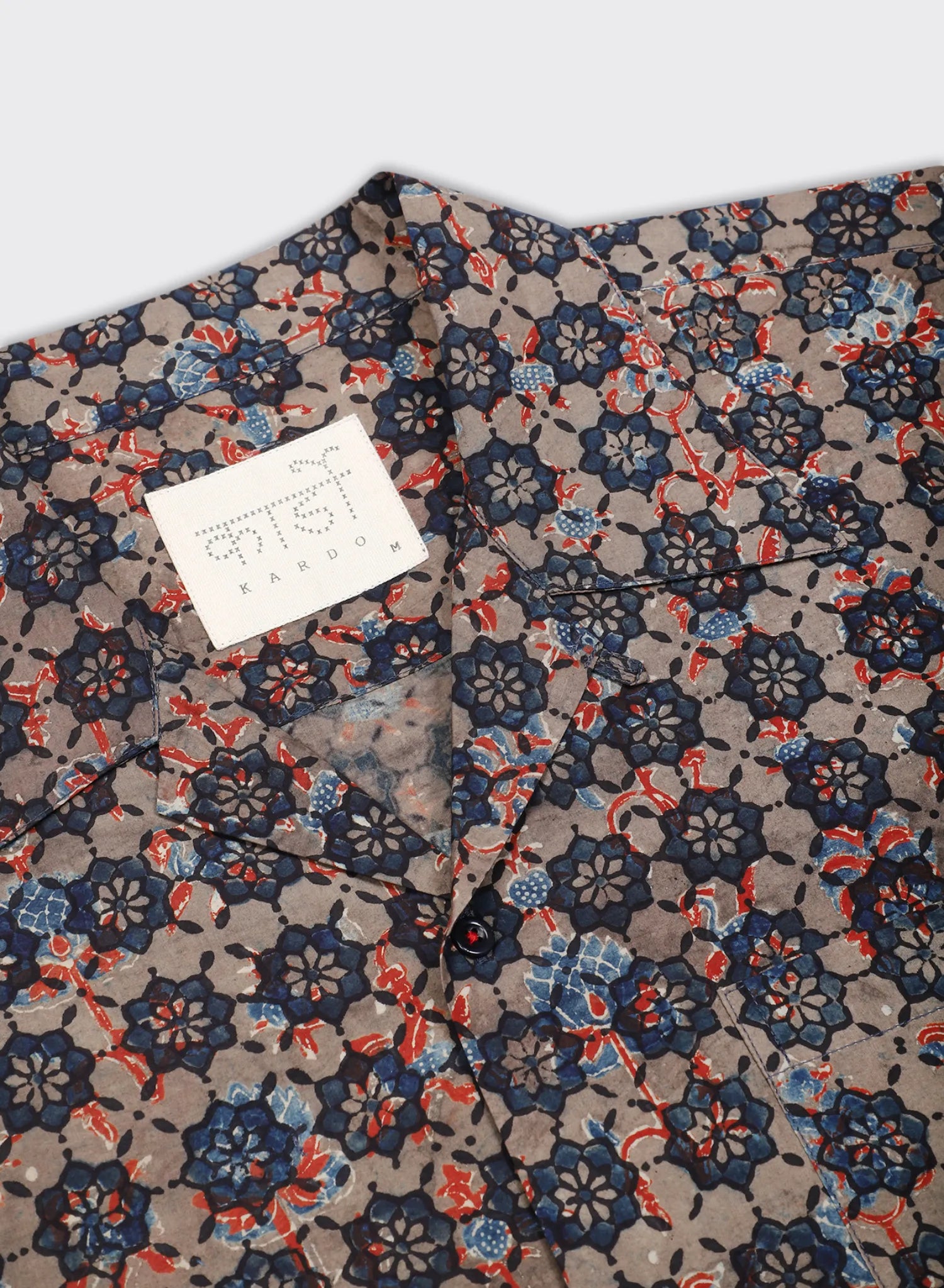 Original resist and hand block print patterns using only natural plant based dyes on crisp compact 100’s count poplin. Ajrakh block print motifs are inspired by geometric patterns and fauna and always dyed with natural dyes. Our Ajrakh prints are produced by the skilled, award winning artisan Sufiyan Khatri and his team in Ajrakhpur.