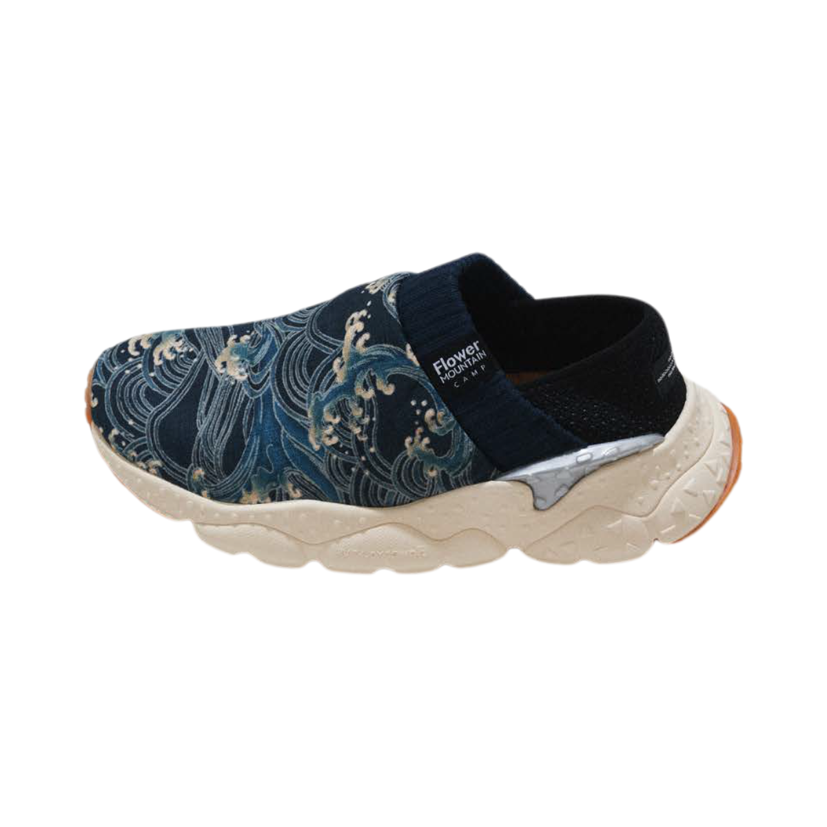 These sneakers by Flower Mountain feature a wavy design on a suede and cotton upper.