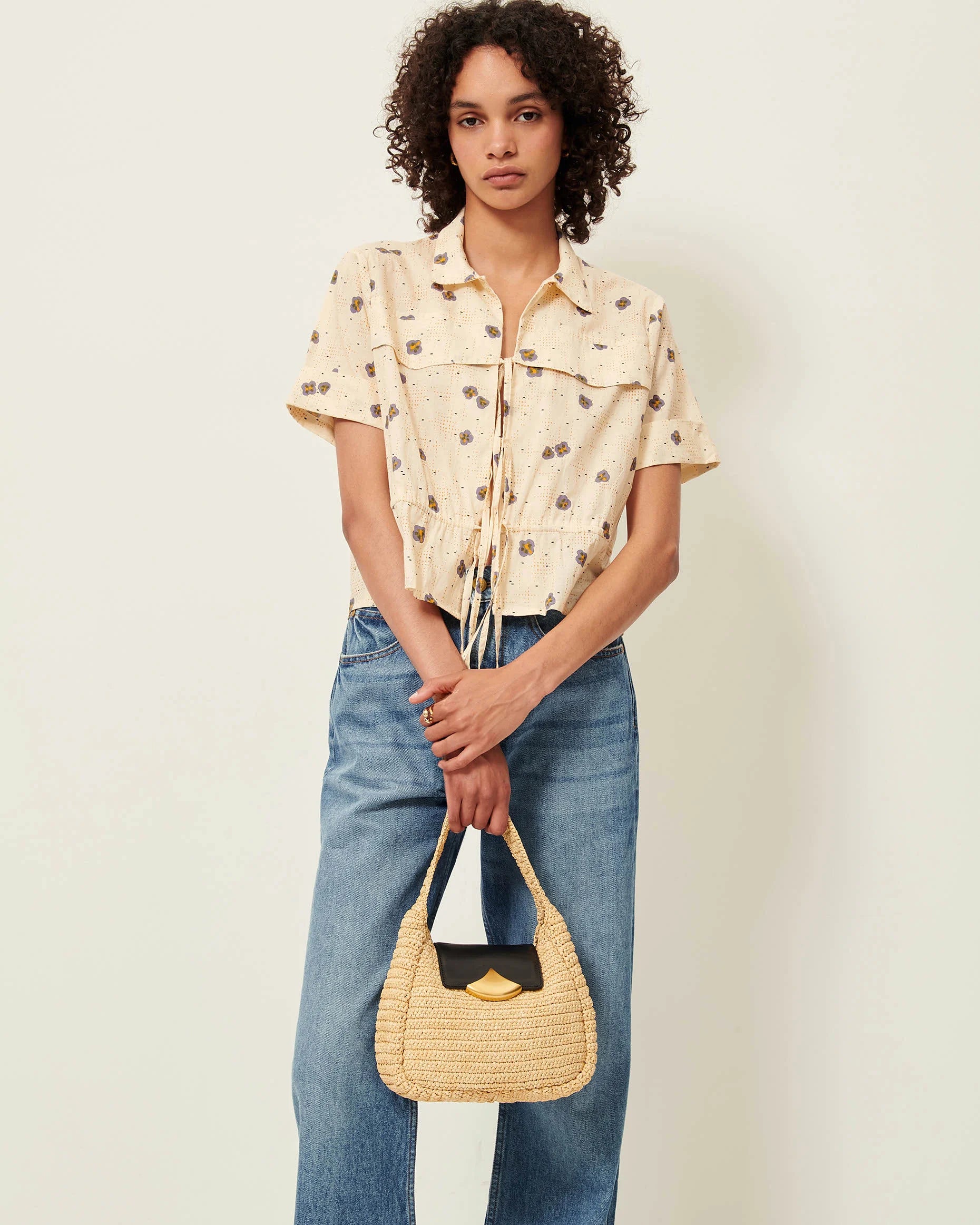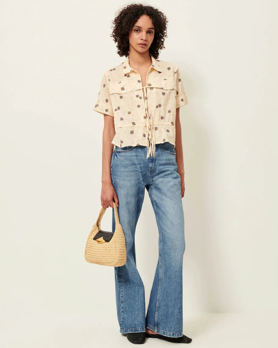 Tie-fastening blouse made from lightweight cotton poplin crafted in Italy, featuring an exclusive Sessùn motif.