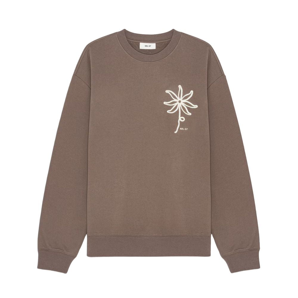 Relaxed-fit crewneck sweatshirt crafted from organic cotton fleece, designed for a soft, smooth handfeel with sporty detailing. Features a rib trim and an embroidered poplin patch for an elevated casual look.