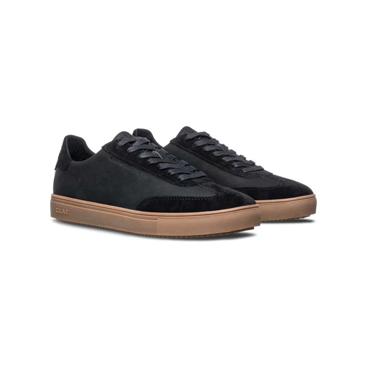 These sneakers by CLAE feature a black upper with a dark gum sole.