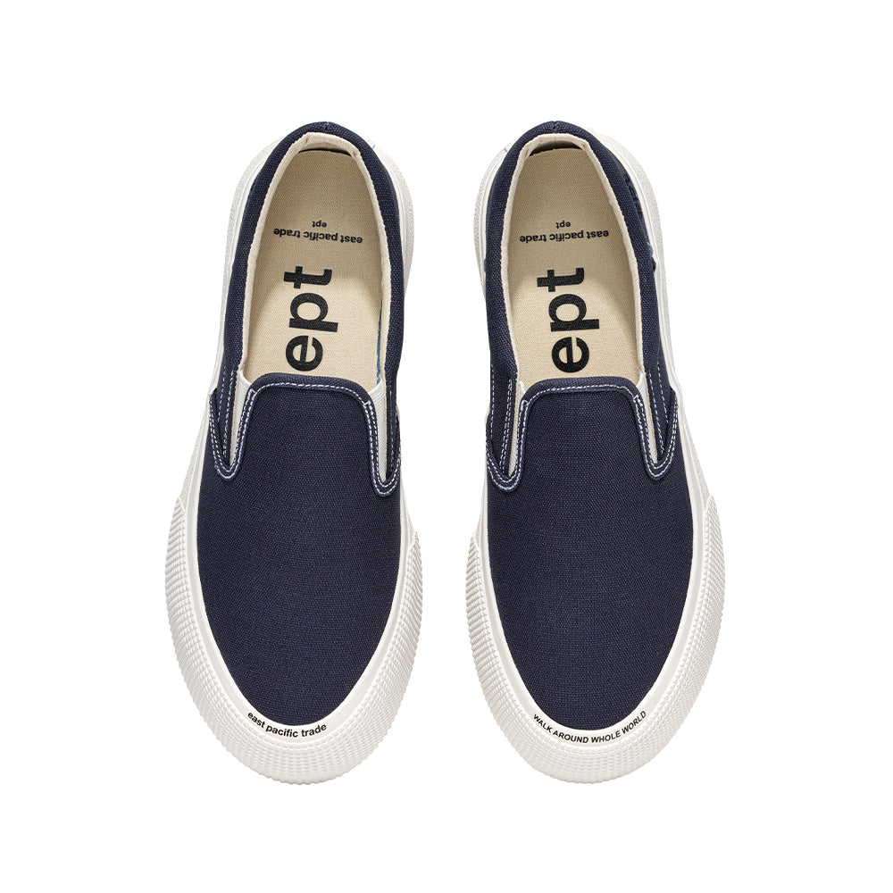 These slip-on sneakers in navy offer a comfortable and casual design for men.