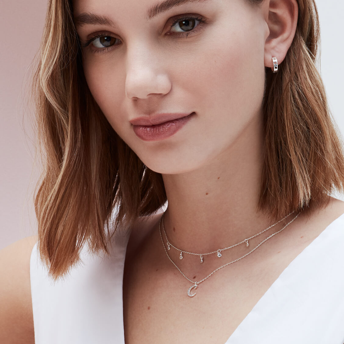 The chain measures 40.5-46cm; the pendant measures 0.8x1.1cm.