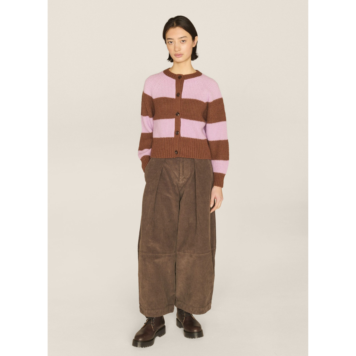 Brown Pink Stripe Foxtail Cardigan (Women)