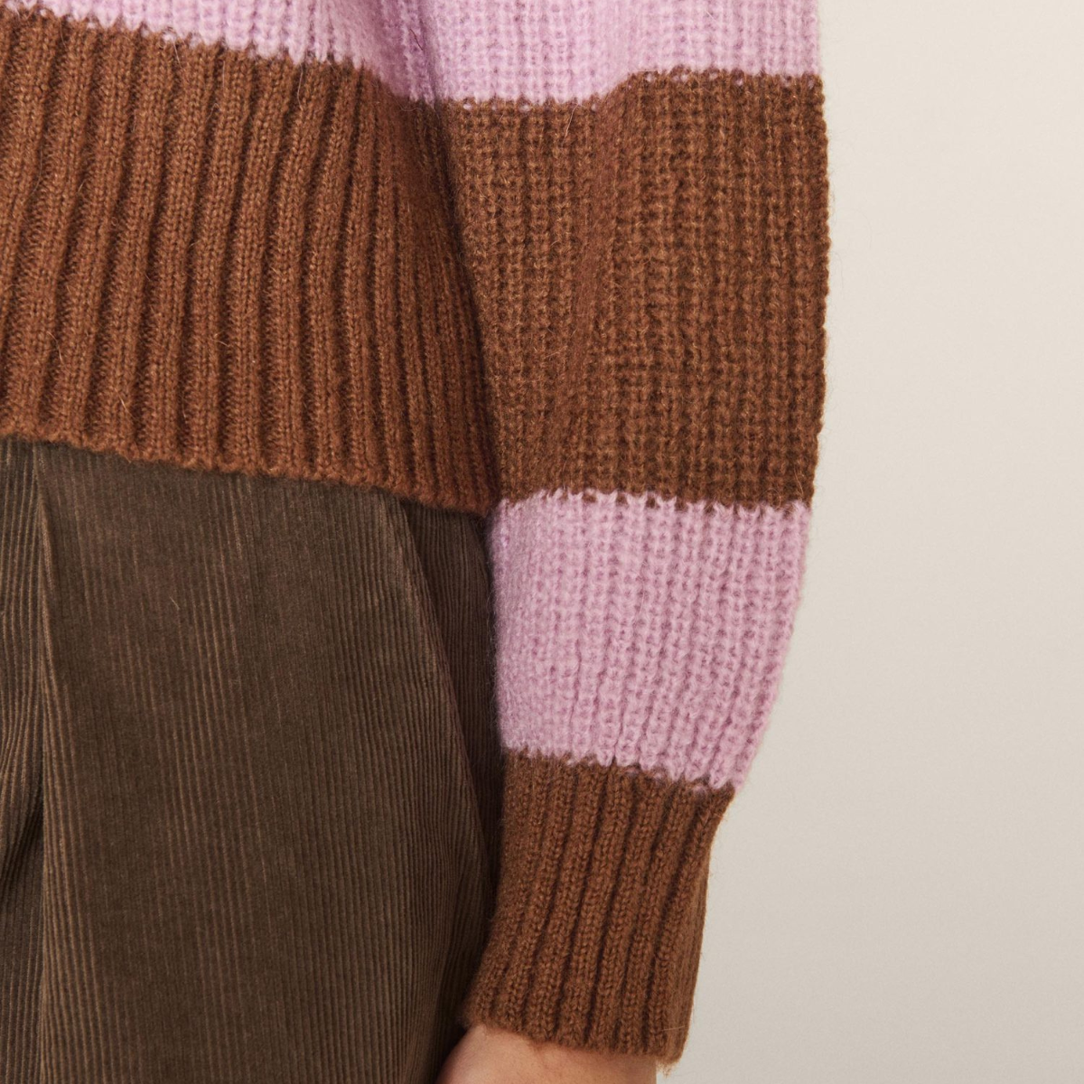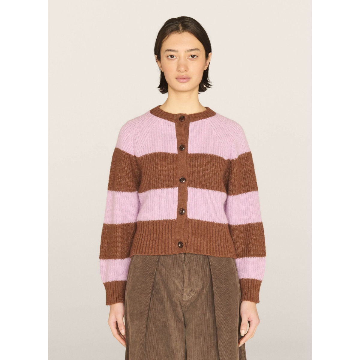 Striped cardigan featuring two contrasting colours. Made from an Italian mohair wool blend.