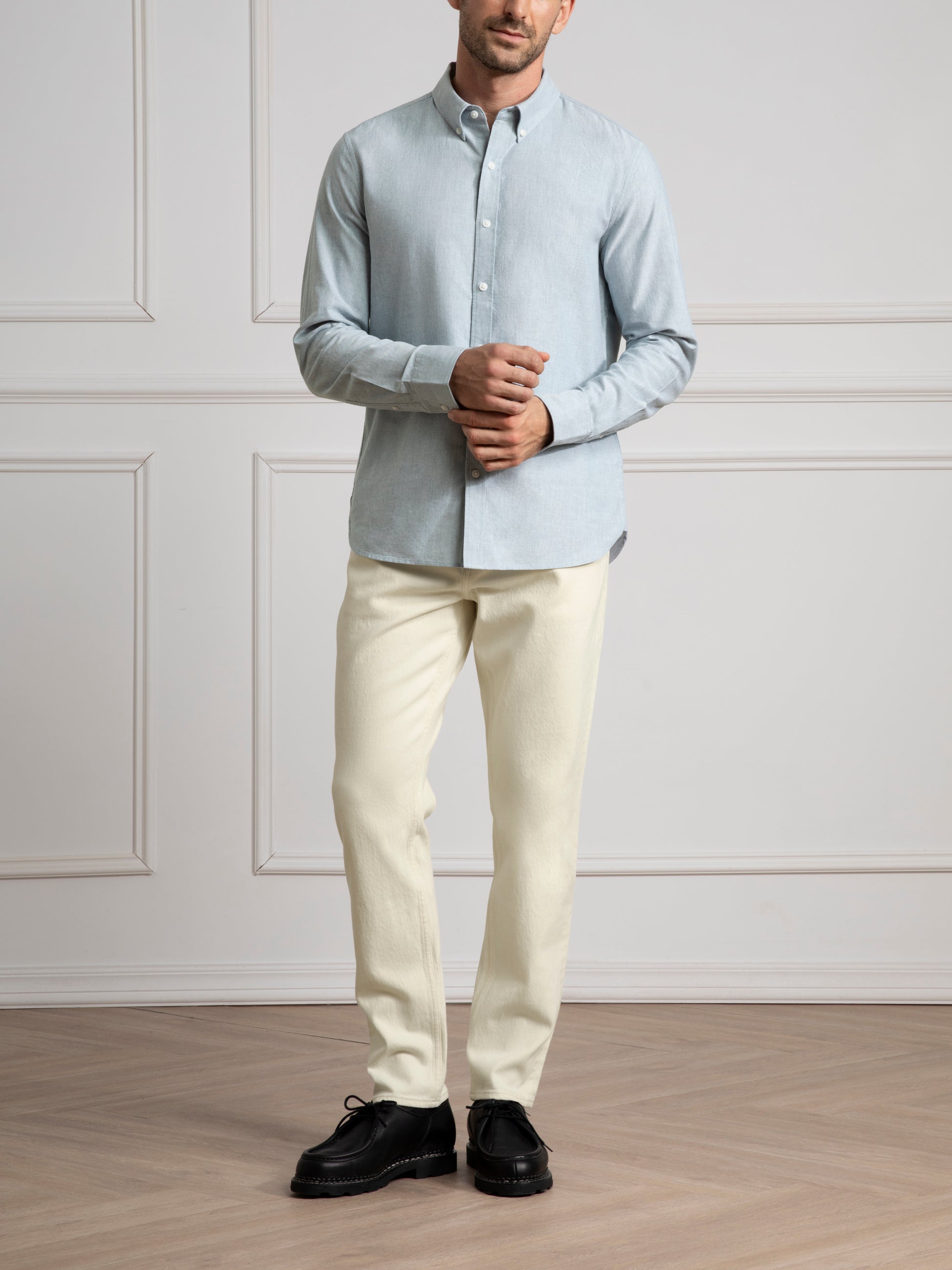 Introducing ONS bestselling Fulton Heather Oxford Shirt, now available in new seasonal colors! Made with 100% Cotton Heather Yarn, this shirt offers a unique textured look and comfortable, well-worn feel. The regular fit allows for effortless movement, making it perfect for any occasion. Upgrade your wardrobe with this must-have staple.
