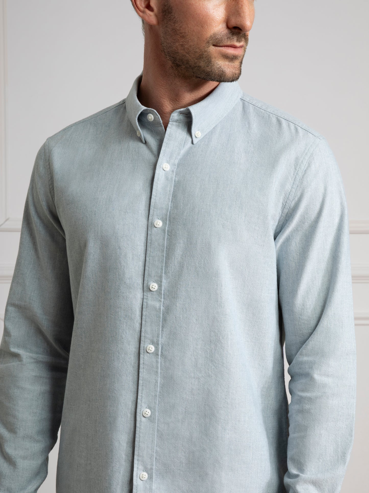 The 'Fulton Heather Oxford Shirt' by O.N.S. offers a classic oxford style in a soft heathered fabric.