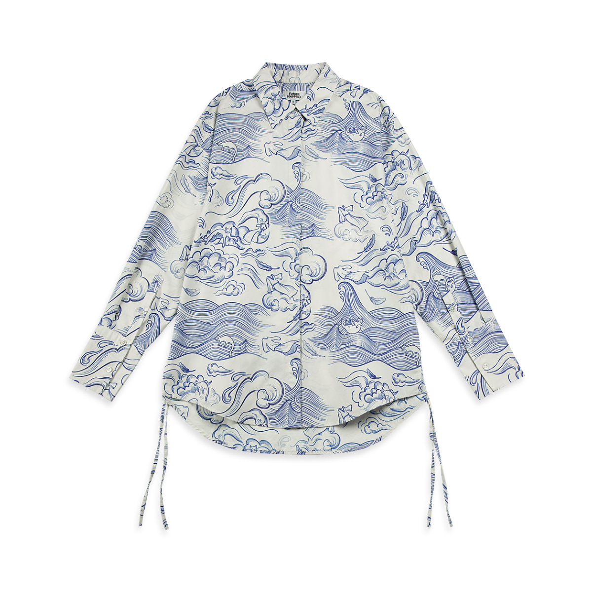 This wrap shirt by Future Classics features an all-over print on a clean pure white.