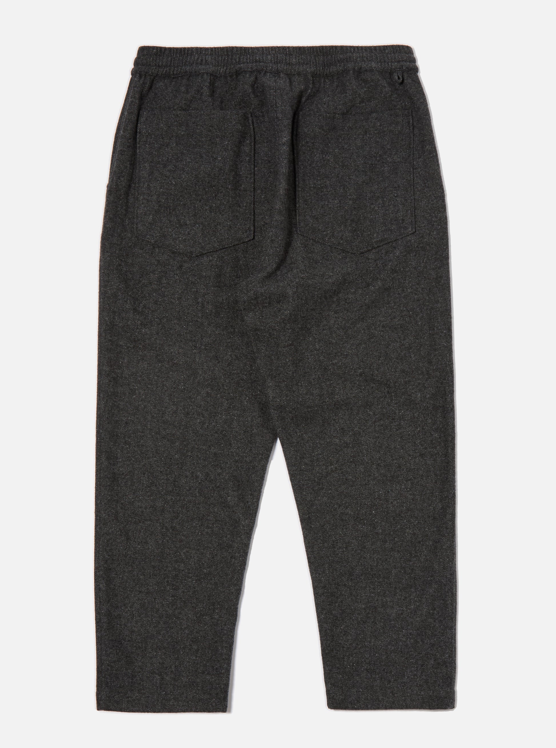 A slightly cropped trouser, designed to sit above the ankle. A casual fit but neat around the hips, with rear patch pockets and a drawstring waist.